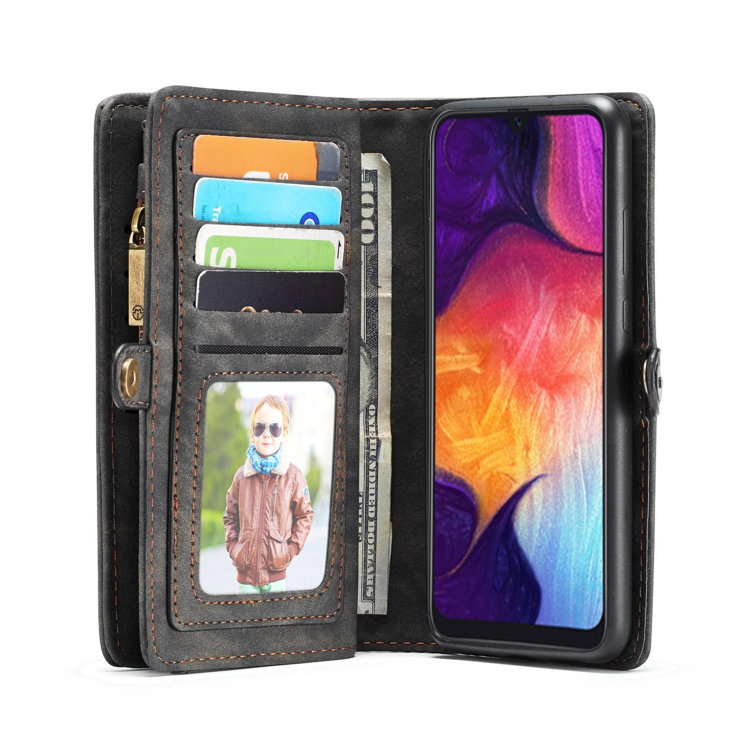 Telefoonhoesje met magnetische case en portemonnee met extra veel kaartsleuven voor Samsung Galaxy A50 van CaseMe. De ruime portemonnee heeft een vak voor bankbiljetten, een muntvak met ritssluiting en meerdere kaartsleuven.