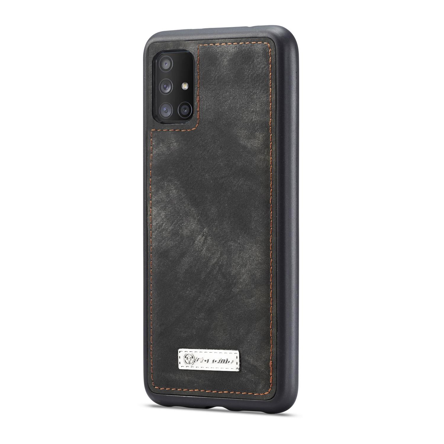 Telefoonhoesje met magnetische case en portemonnee met extra veel kaartsleuven voor Samsung Galaxy A51 van CaseMe. De ruime portemonnee heeft een vak voor bankbiljetten, een muntvak met ritssluiting en meerdere kaartsleuven.
