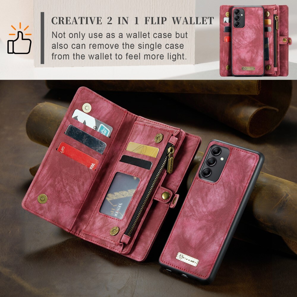 Telefoonhoesje met magnetische case en portemonnee met extra veel kaartsleuven voor Samsung Galaxy A54 van CaseMe. De ruime portemonnee heeft een vak voor bankbiljetten, een muntvak met ritssluiting en meerdere kaartsleuven.