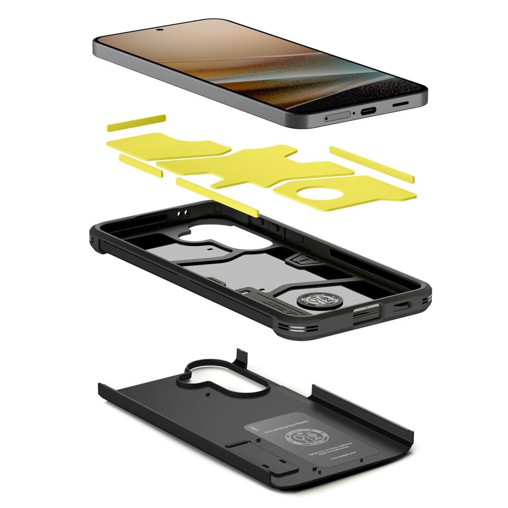 Bescherm je Samsung Galaxy A57 optimaal tegen stoten en schade met de Tough Armor-hoes van Spigen. De hoes heeft een tweedelig ontwerp en is voorzien van een schuiminleg voor extra schokabsorptie. Verhoogde randen helpen krassen op het scherm en de camera aan de achterkant te voorkomen.