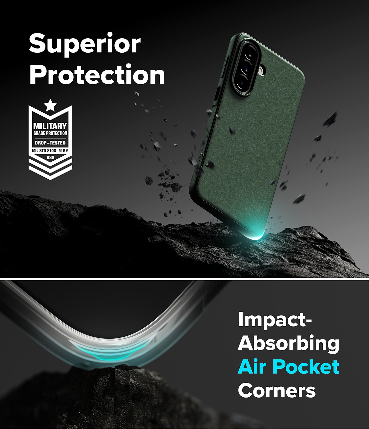 Onyx is een robuuste hoes van Ringke voor Samsung Galaxy A57. Een hoes die stijlvol design combineert met uitstekende schokbescherming. De hoes heeft verstevigde hoeken, verhoogde randen en tactiele knoppen.