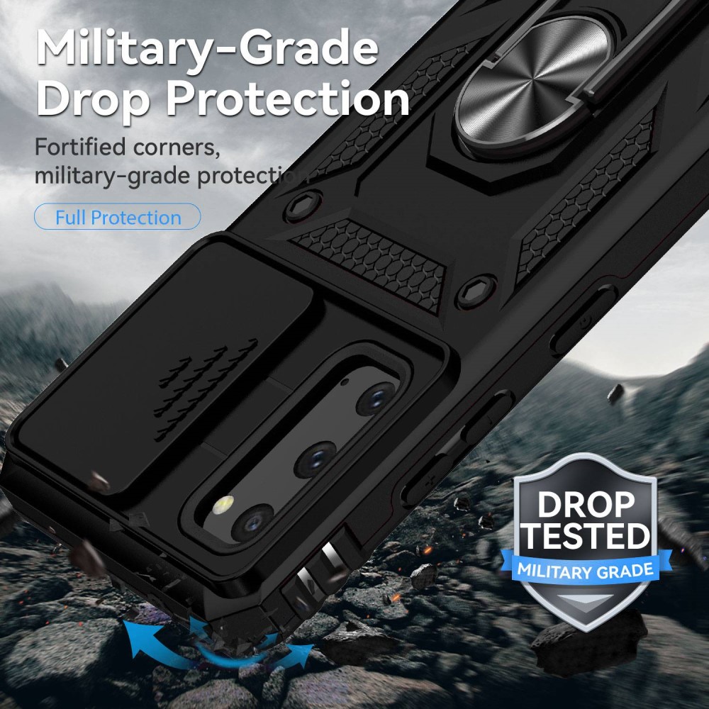 Hoesje met Camera Protector voor Samsung Galaxy S20. Voor optimale bescherming tegen stoten en vallen heeft het hoesje een driedelige constructie met een TPU-kern, een harde kunststof buitenlaag en een beschermende rand rond het scherm. De ring aan de achterkant kan worden uitgeklapt om extra grip te geven op je telefoon. De ring kan ook worden gebruikt als standaard om films, video’s of games te bekijken.