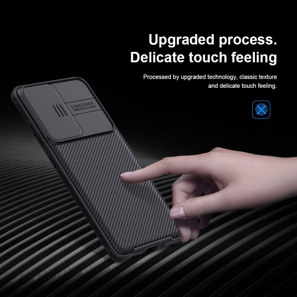 Backcoverhoesje van Nillkin met camerabescherming in stijlvol ontwerp voor Samsung Galaxy S21 Ultra. Om de camera van je telefoon te beschermen tegen krassen en beschadigingen heeft het hoesje een schuifje dat gemakkelijk voor de camera schuift wanneer je deze niet gebruikt.