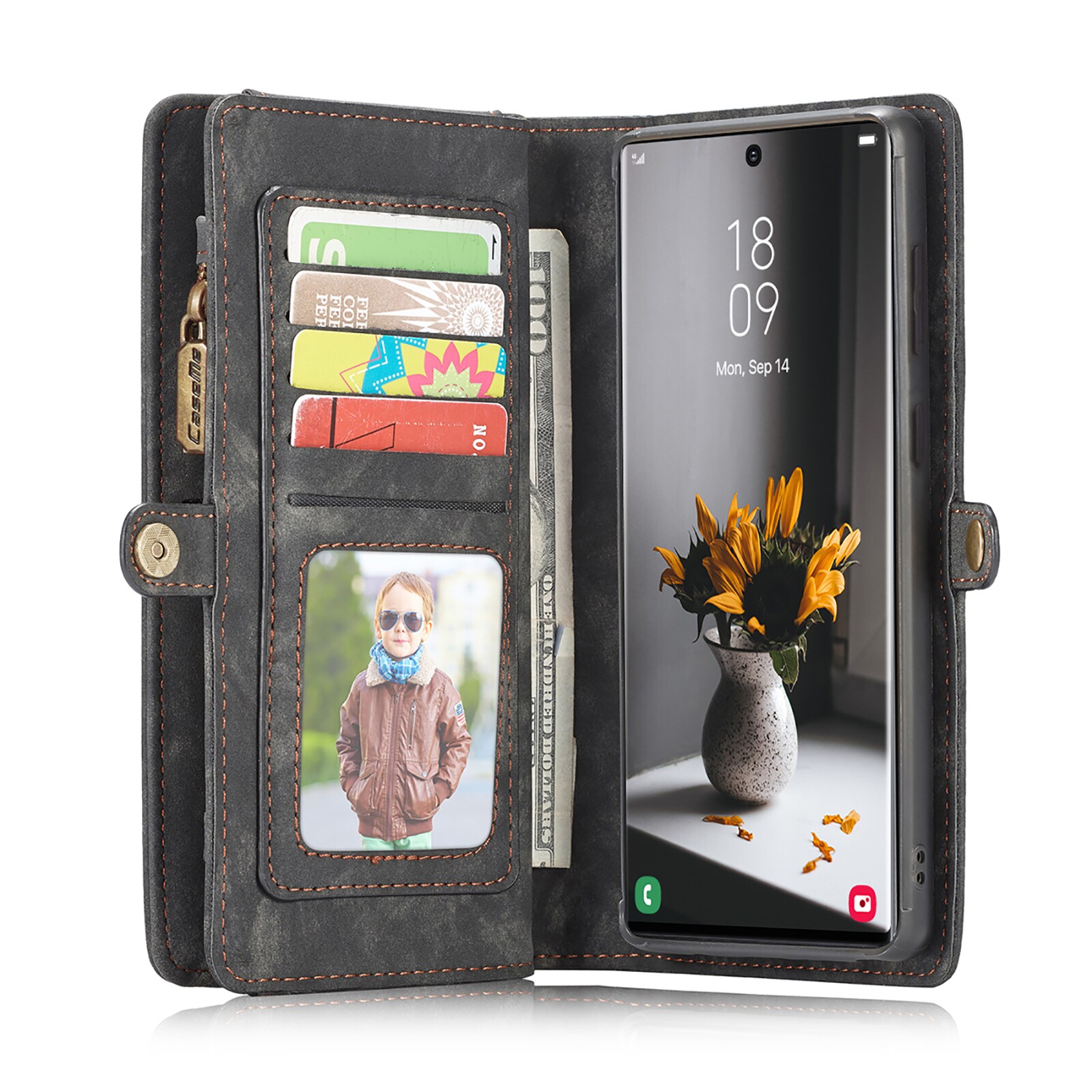 Telefoonhoesje met magnetische case en portemonnee met extra veel kaartsleuven voor Samsung Galaxy S22 Ultra van CaseMe. De ruime portemonnee heeft een vak voor bankbiljetten, een muntvak met ritssluiting en meerdere kaartsleuven.