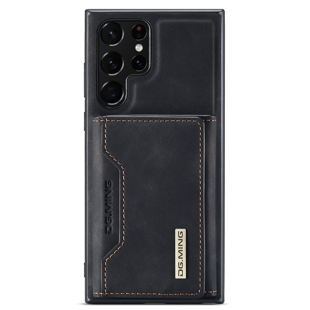 Leren hoesje voor Samsung Galaxy S22 Ultra met bijbehorende portemonnee. De portemonnee wordt met magneten aan de achterkant van het hoesje bevestigd en kan eenvoudig worden verwijderd wanneer je deze niet nodig hebt. Door de portemonnee uit te klappen, kan deze ook worden gebruikt als standaard, zodat je gemakkelijk films of video’s kunt bekijken.