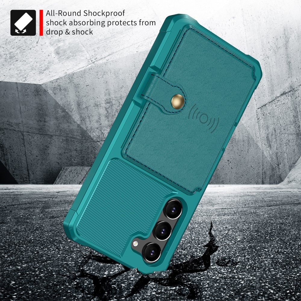 Schokabsorberend backcase hoesje voor de Samsung Galaxy S23 met ingebouwde portemonnee aan de achterkant. Het hoesje heeft een modern design en verstevigde hoeken voor de beste bescherming.