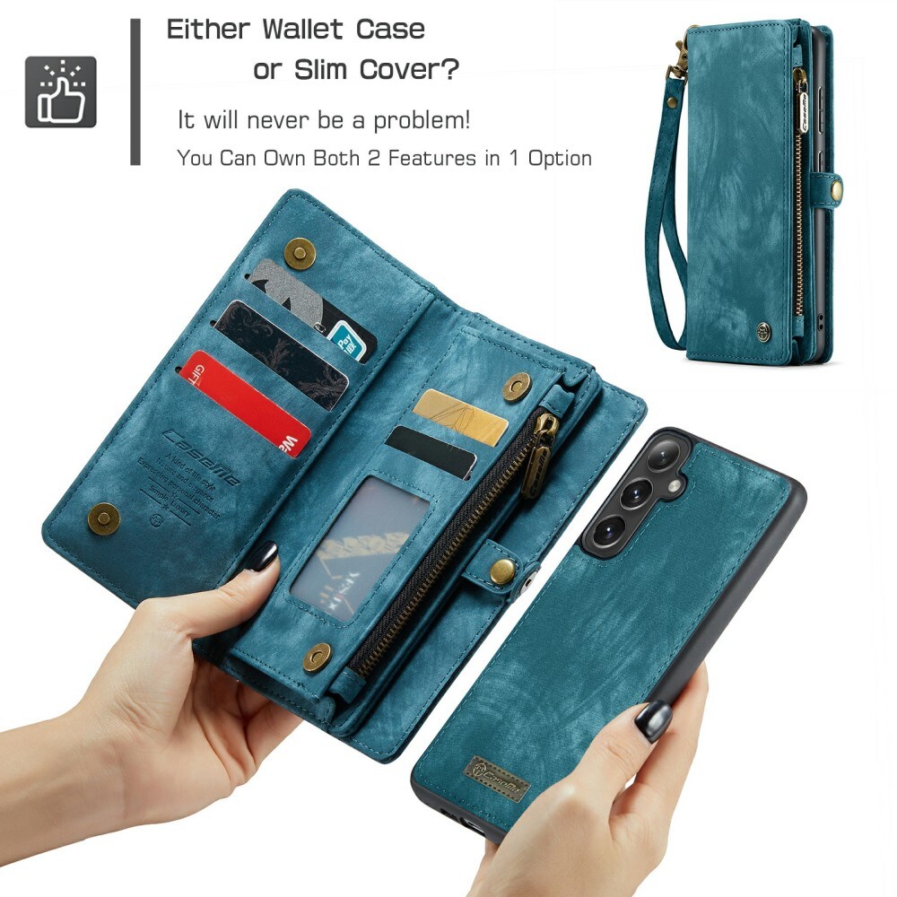 Telefoonhoesje met magnetische case en portemonnee met extra veel kaartsleuven voor Samsung Galaxy S24 Plus van CaseMe. De ruime portemonnee heeft een vak voor bankbiljetten, een muntvak met ritssluiting en meerdere kaartsleuven.
