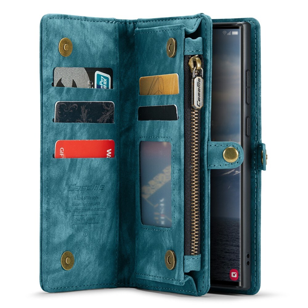 Telefoonhoesje met magnetische case en portemonnee met extra veel kaartsleuven voor Samsung Galaxy S24 Ultra van CaseMe. De ruime portemonnee heeft een vak voor bankbiljetten, een muntvak met ritssluiting en meerdere kaartsleuven.