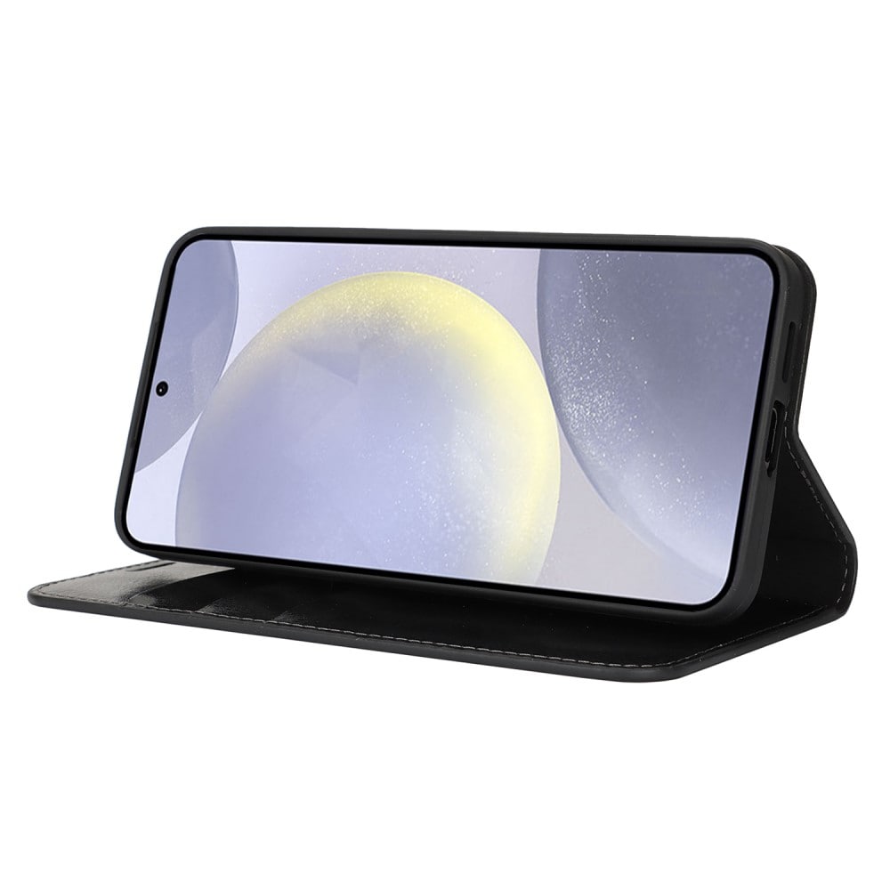 Bescherm je Samsung Galaxy S25 Plus met een hoesje van echt leer. Ondanks het dunne en slimme design heeft het hoesje drie vakjes voor pasjes en één vakje voor briefgeld aan de binnenkant van de voorflap. Je telefoon zit veilig in de flexibele houder binnenin het hoesje.