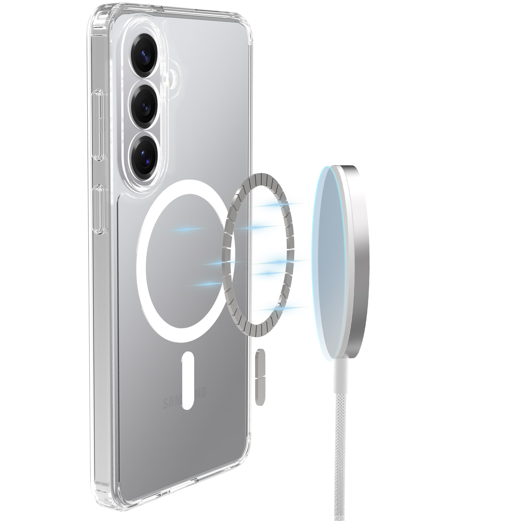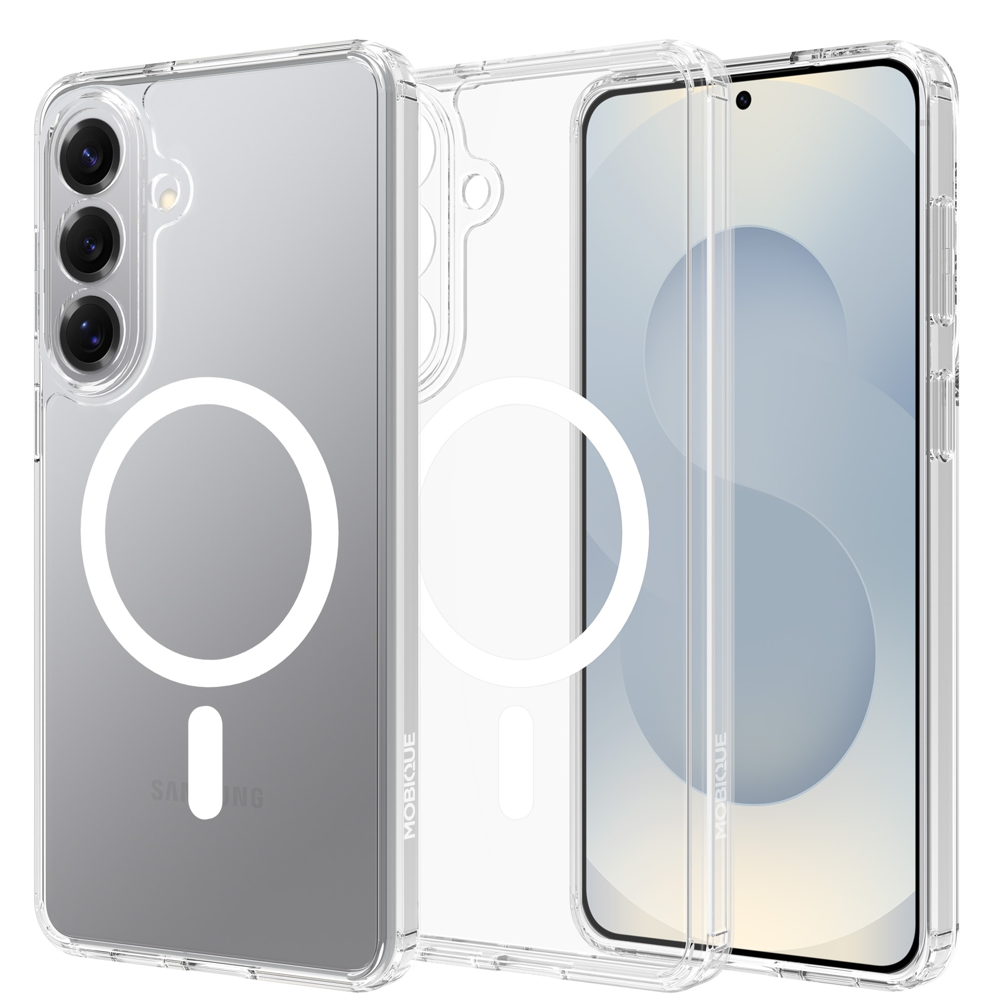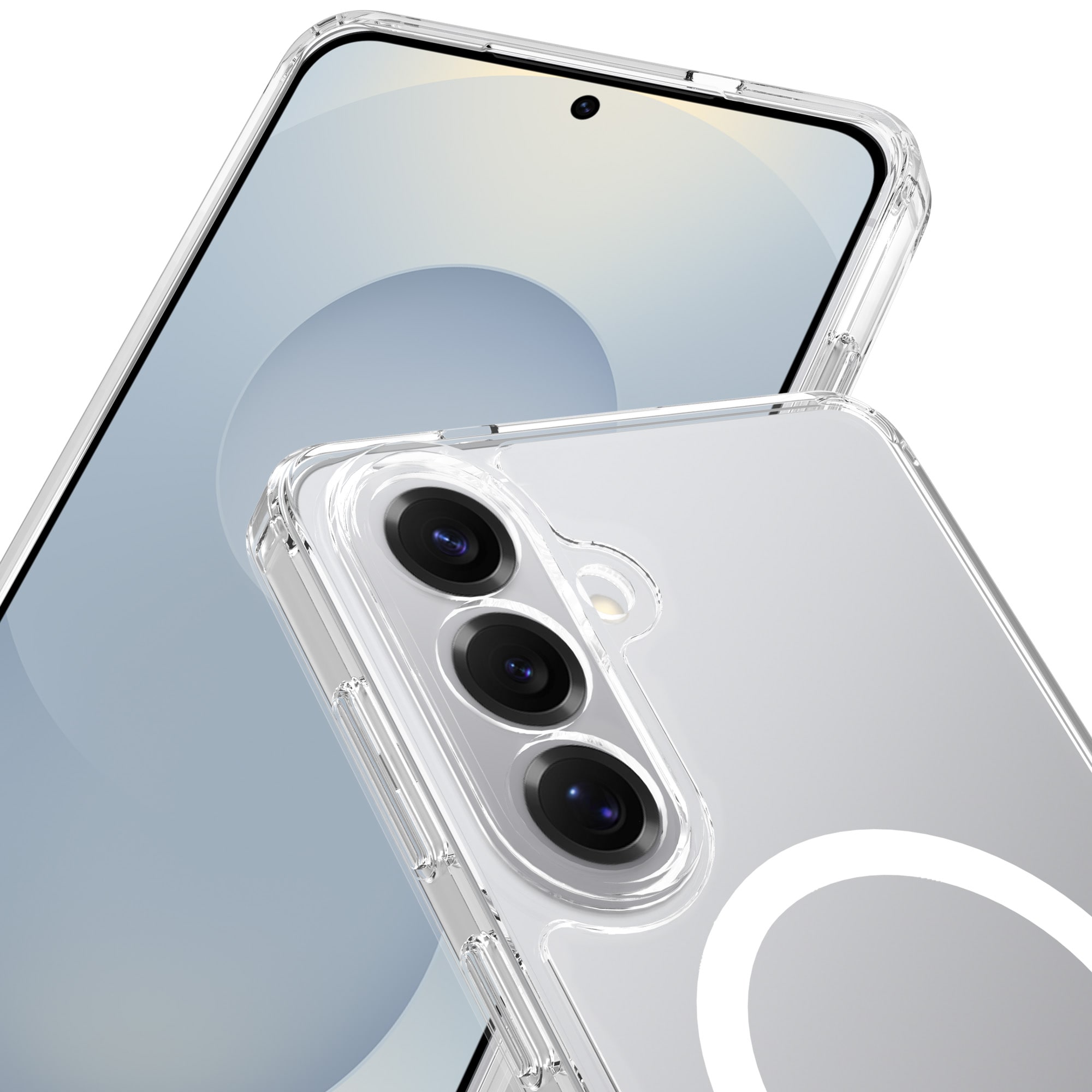 Hybride backcase met uitvouwbare magnetische ring voor Samsung Galaxy S26 Plus. Voor de beste bescherming van je telefoon is dit hybride hoesje tweeledig en bestaat uit een kern van TPU-siliconen en een buitenkant van plastic. De magnetische ring op de achterkant kan gebruikt worden met MagSafe-compatibele accessoires zoals laders en pasjeshouders.