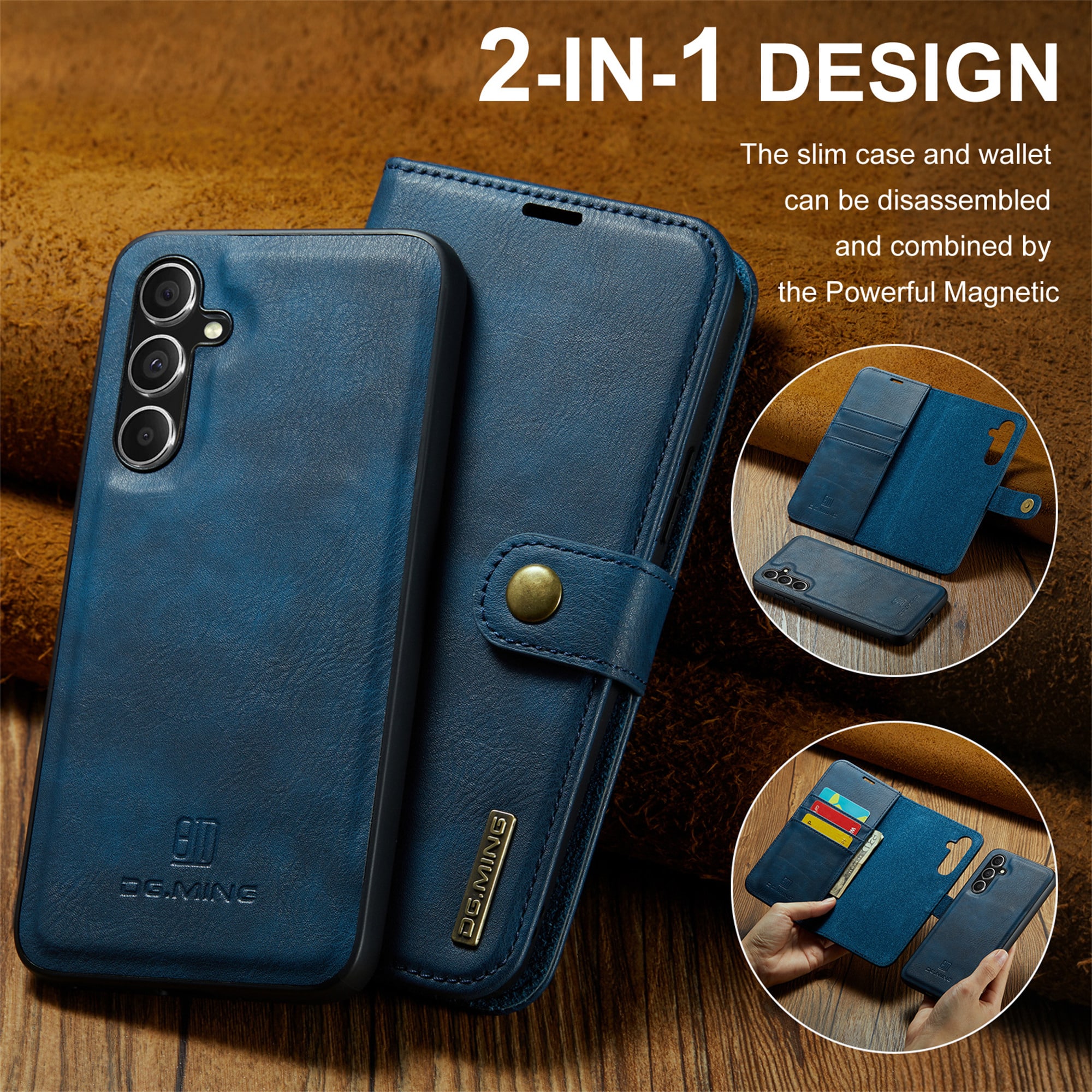2-in-1-hoesje bestaande uit een bookcoverhoesje met daarin een afneembare magneet-backcase voor Samsung Galaxy S26 Plus van DG.MING. Het hoesje heeft een klassieke en stijlvolle uitstraling. Eenvoudig losnemen van je telefoon in het backcover hoesje om enkel je mobiel te gebruiken, bijvoorbeeld thuis of op werk.