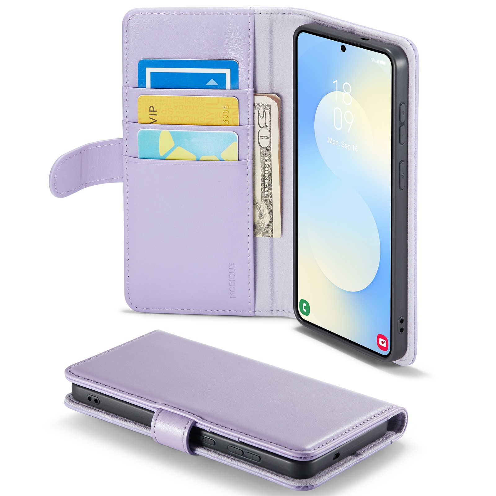 Bookcover hoesje voor Samsung Galaxy S26 Plus. Het hoesje beschermt je hele telefoon en heeft plek voor pasjes aan de binnenkant van de voorflap. De pasjeshouder heeft drie vakken en een groter vakje voor briefgeld of bonnetjes.