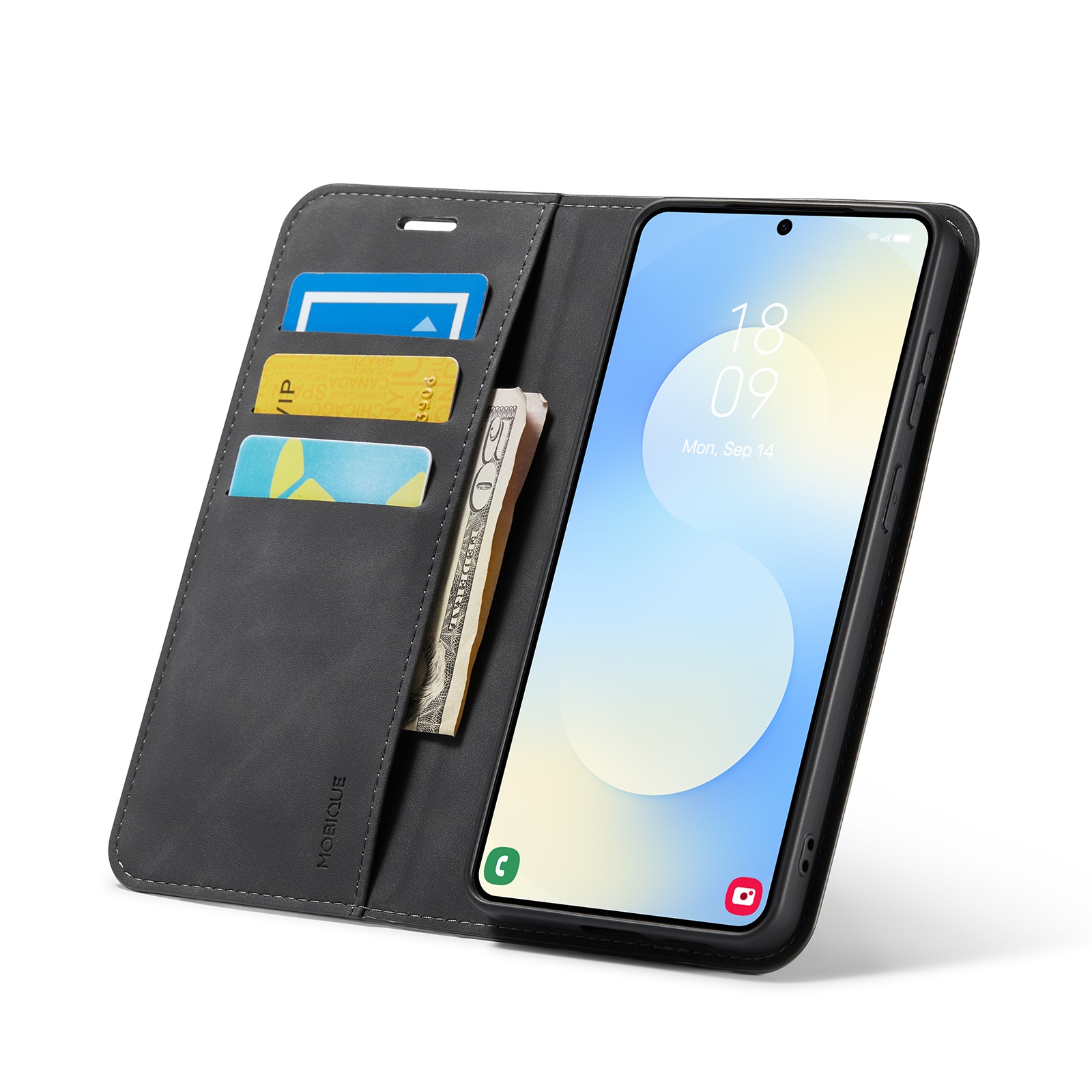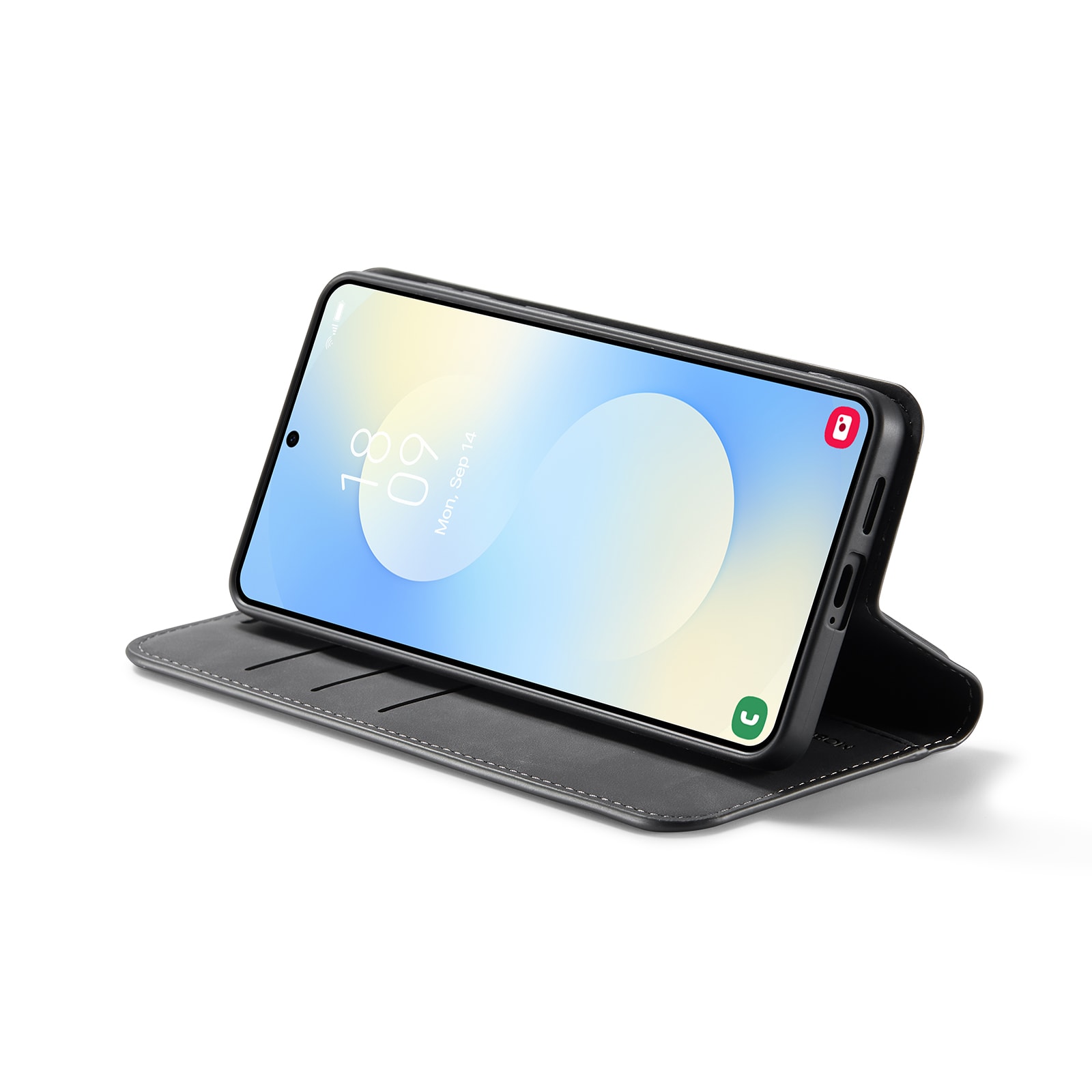 Smartphonehoesje voor Samsung Galaxy S26 Plus.Het hoesje heeft een zijdezachte buitenkant, gemaakt van duurzaam kunstleer, en een ingebouwde case van schokabsorberend TPU. De flap biedt uitstekende bescherming tegen krassen op het scherm, terwijl de ingebouwde case de telefoon beschermt tegen stoten en vallen.