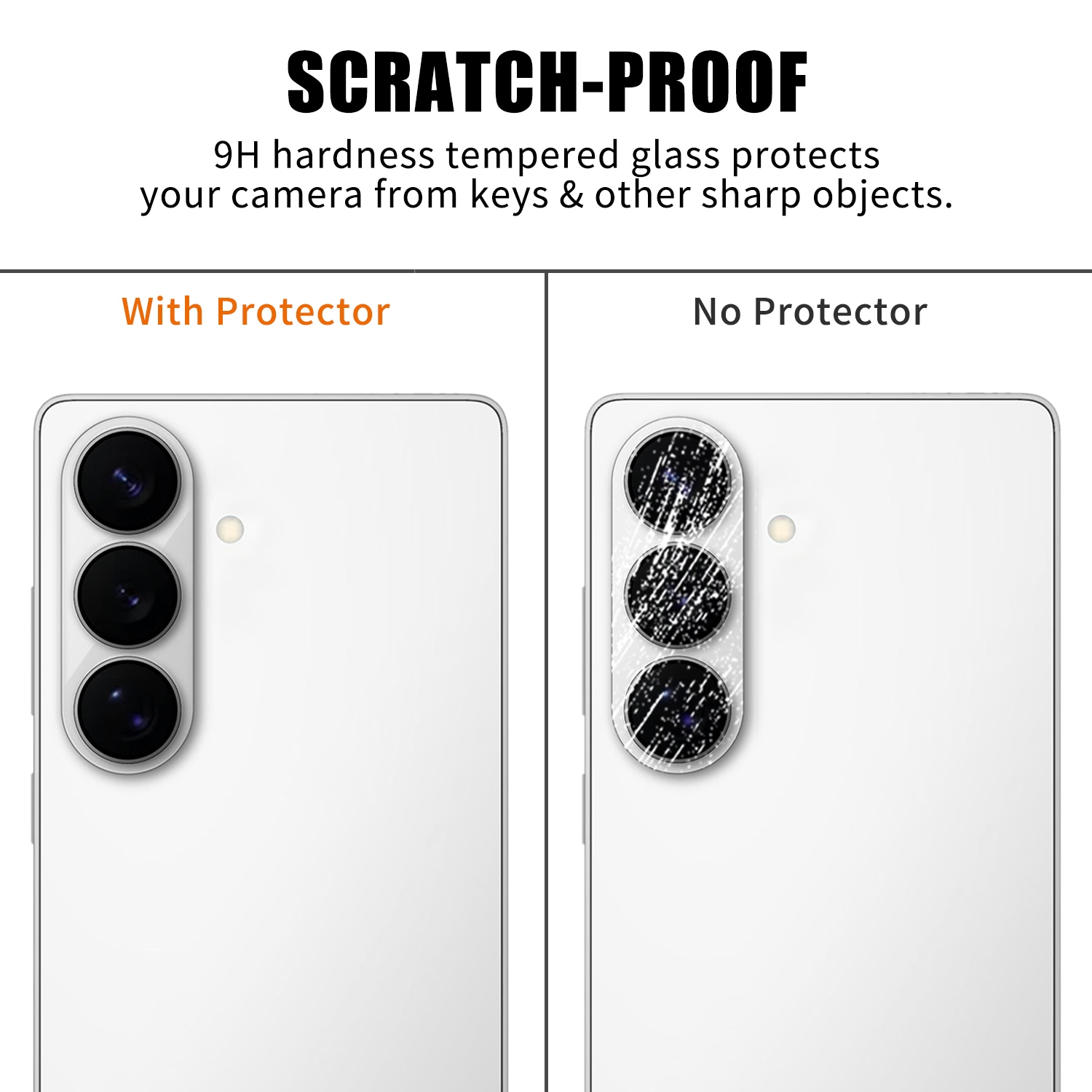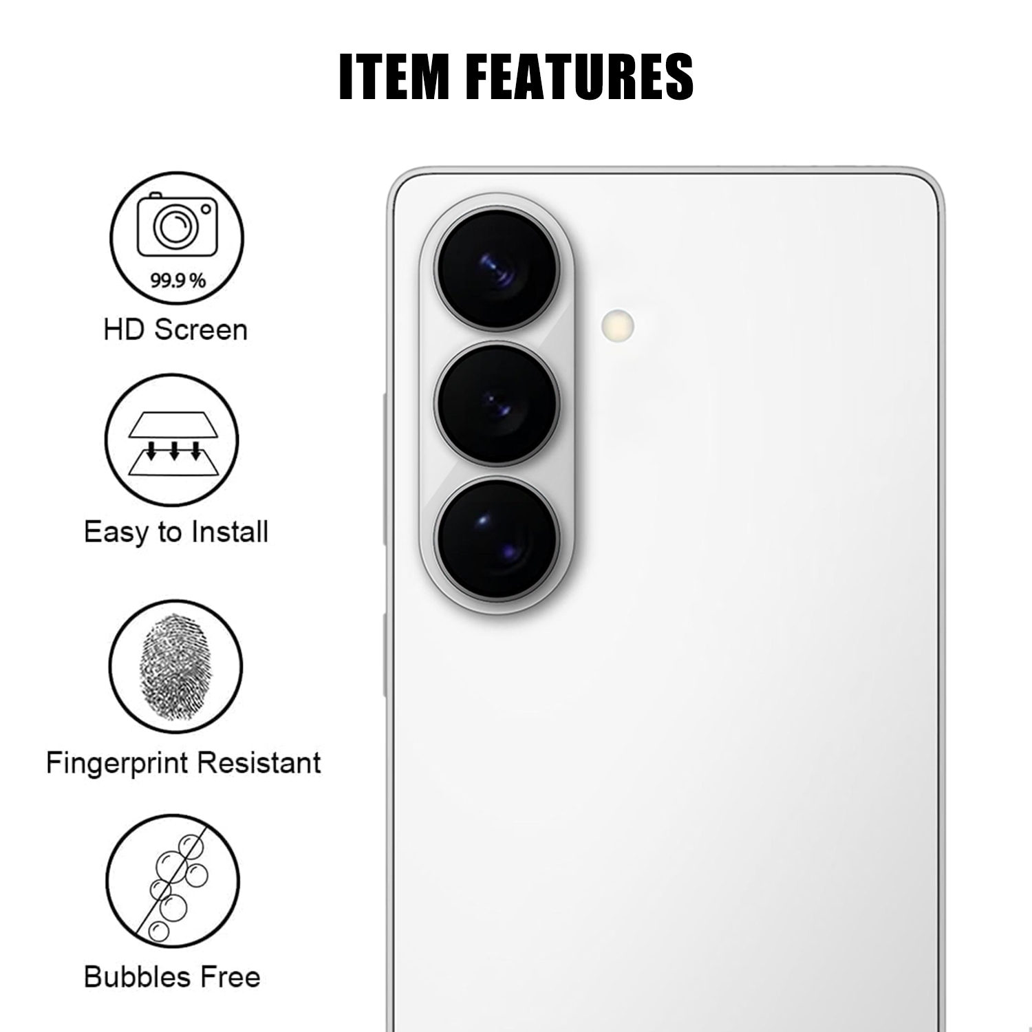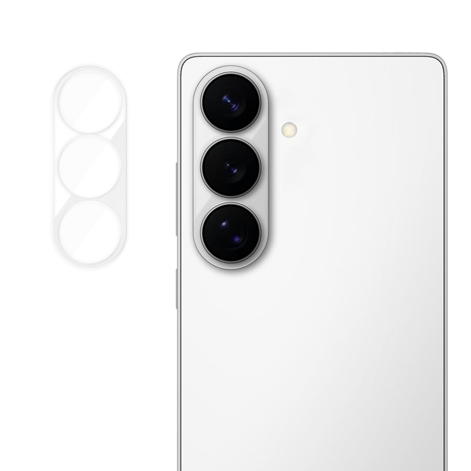 Cameralensbeschermer van gehard glas voor Samsung Galaxy S26 Plus, ontworpen om de cameramodule te beschermen tegen krassen, stoten en externe slijtage. De beschermer is volledig dekkend en bedekt zowel de lenzen als de camerabehuizing. Na montage is de beschermer discreet en heeft hij geen invloed op het uiterlijk van de telefoon.