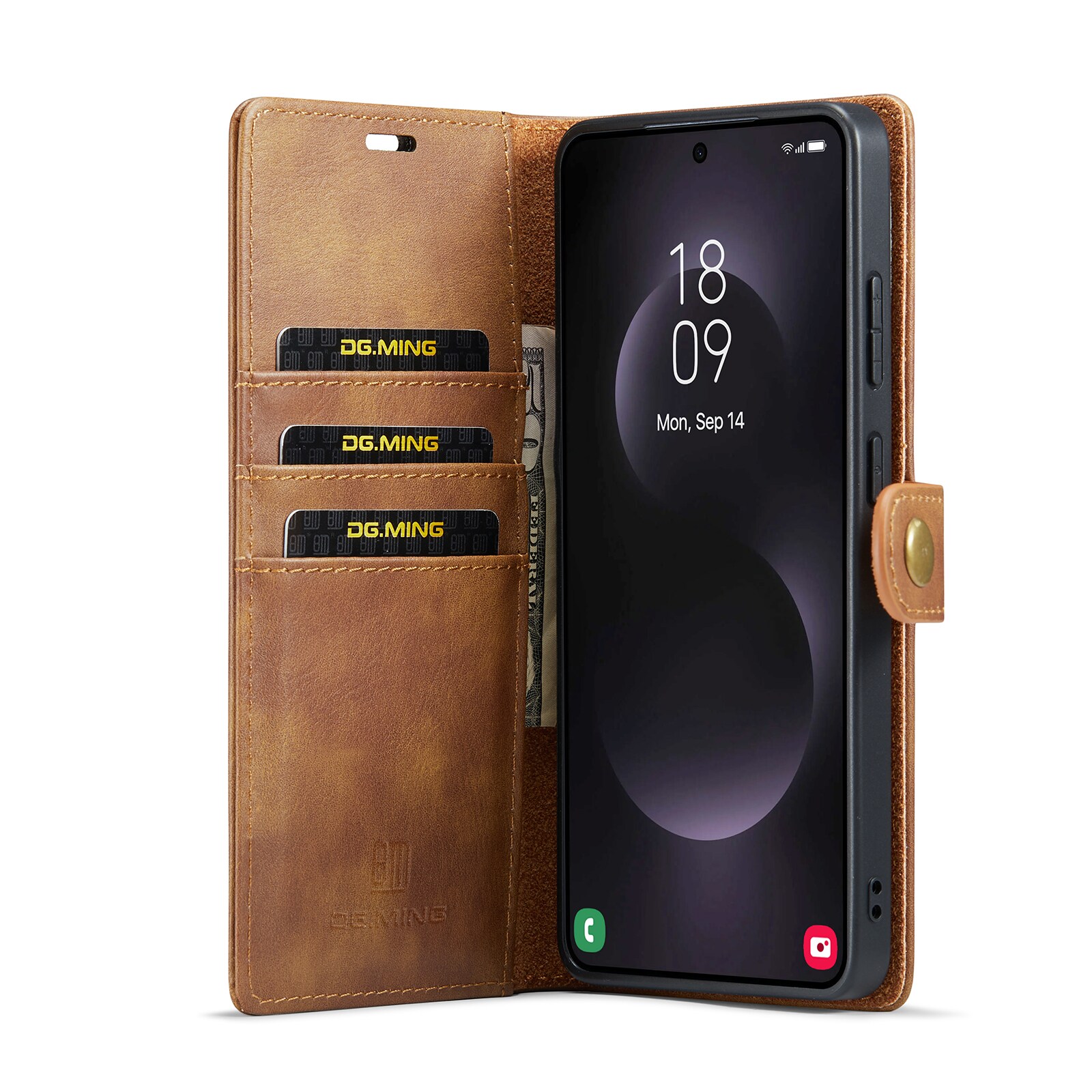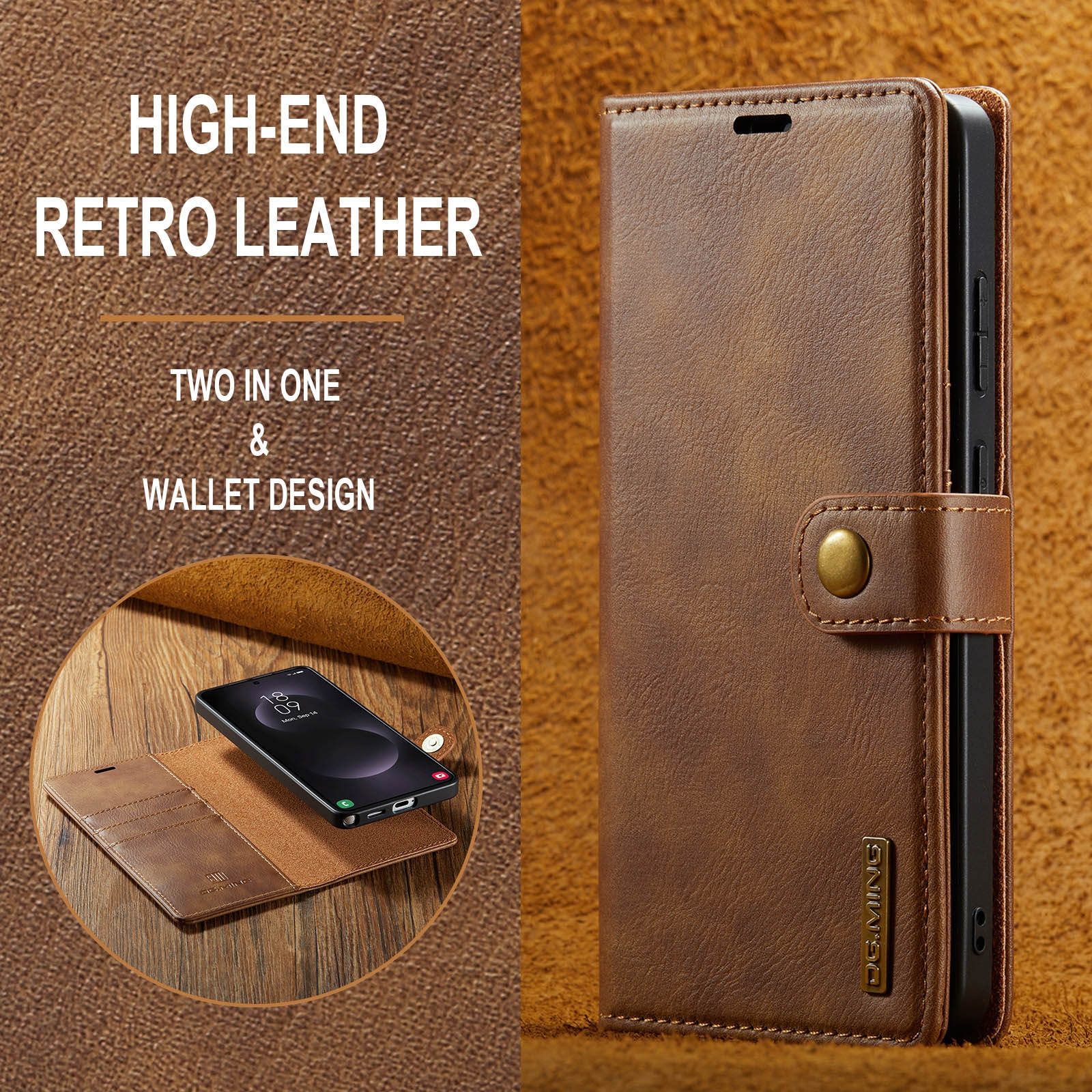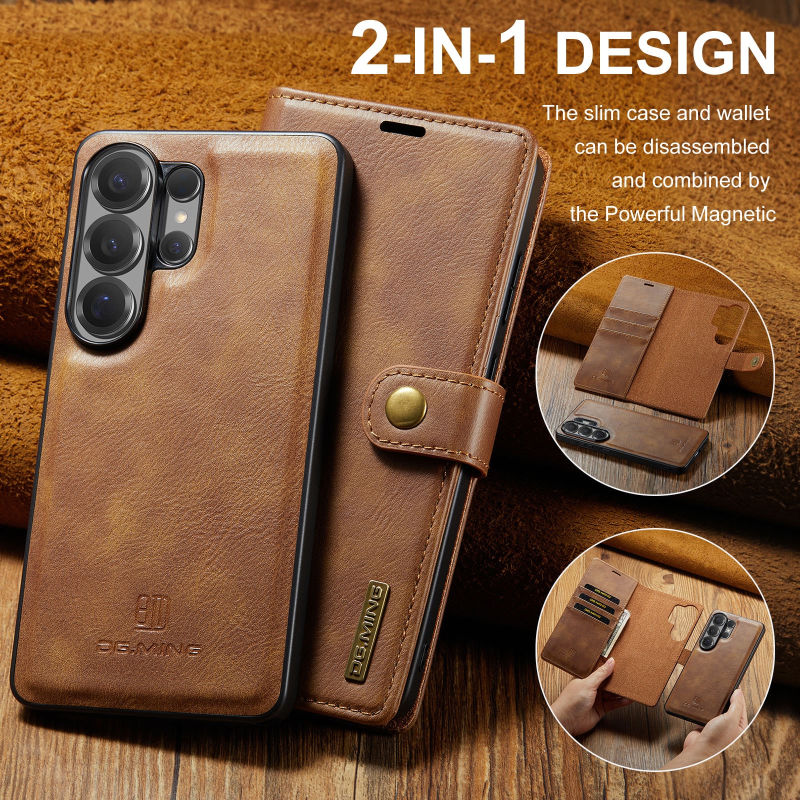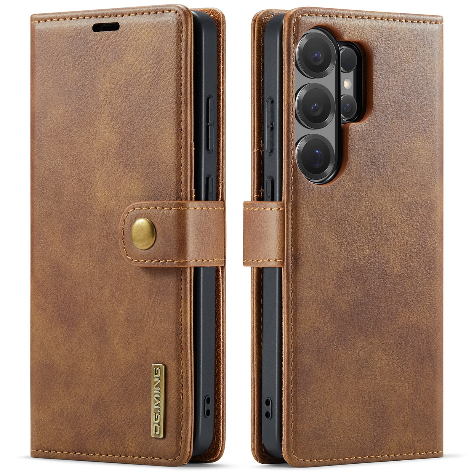 2-in-1-hoesje bestaande uit een bookcoverhoesje met daarin een afneembare magneet-backcase voor Samsung Galaxy S26 Ultra van DG.MING. Het hoesje heeft een klassieke en stijlvolle uitstraling. Eenvoudig losnemen van je telefoon in het backcover hoesje om enkel je mobiel te gebruiken, bijvoorbeeld thuis of op werk.
