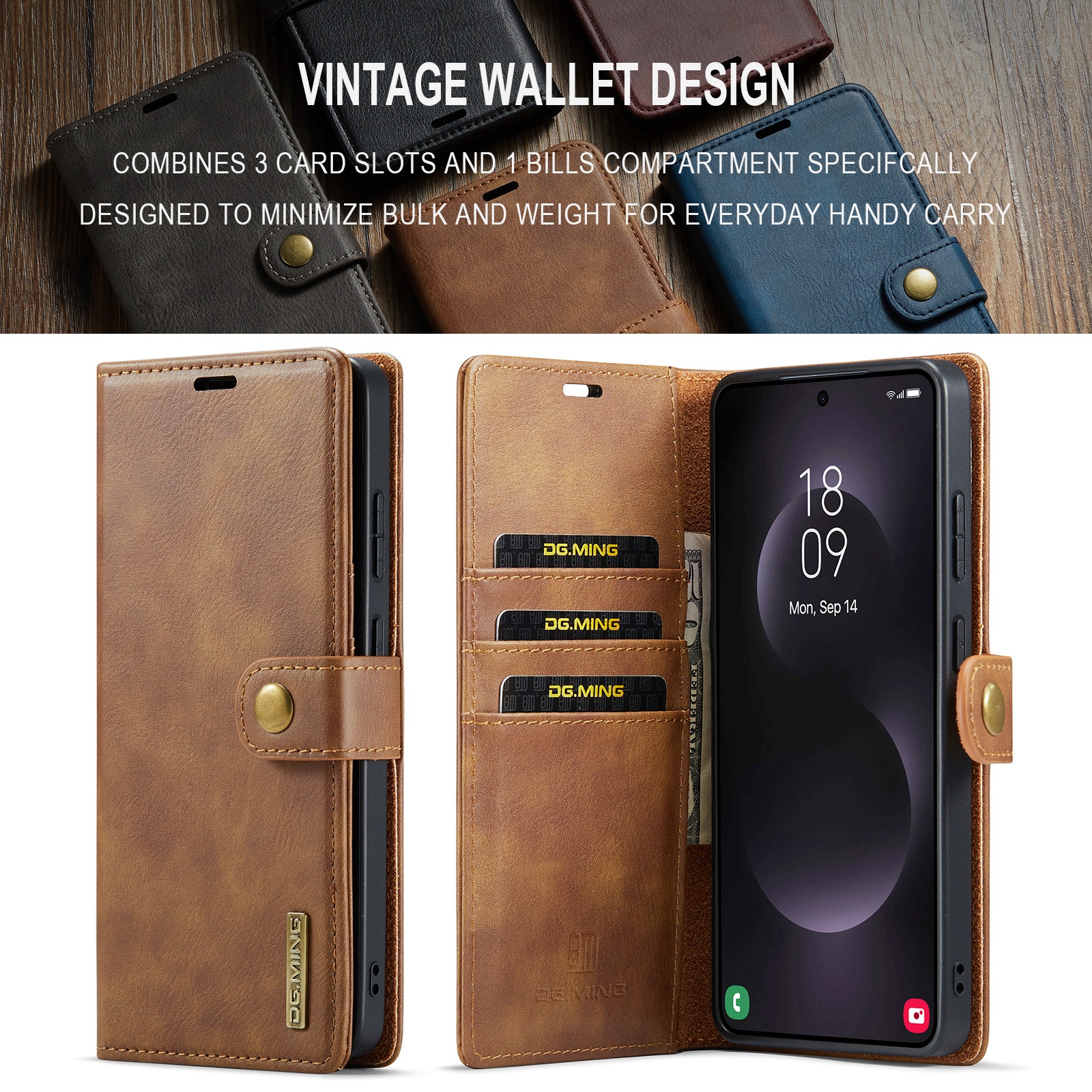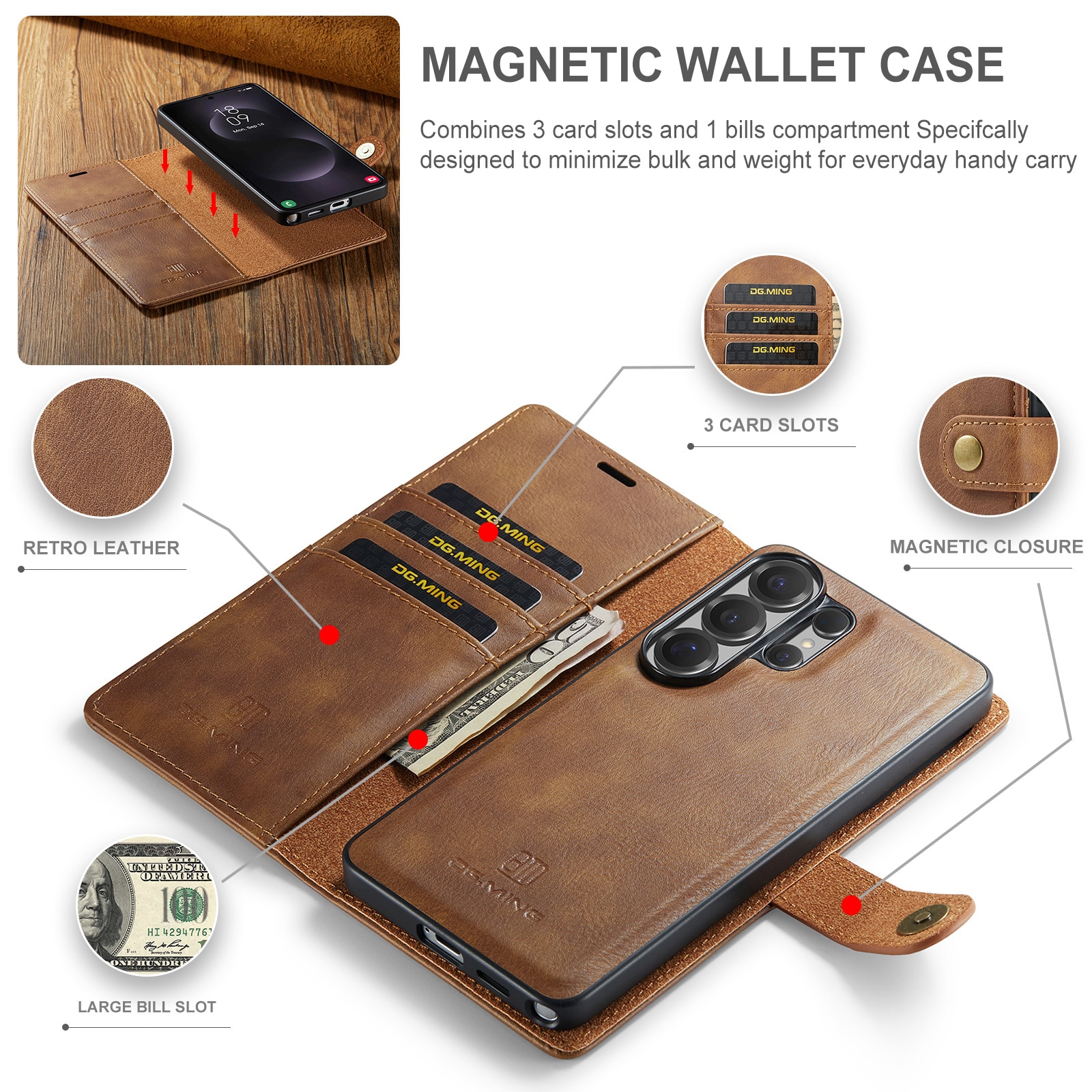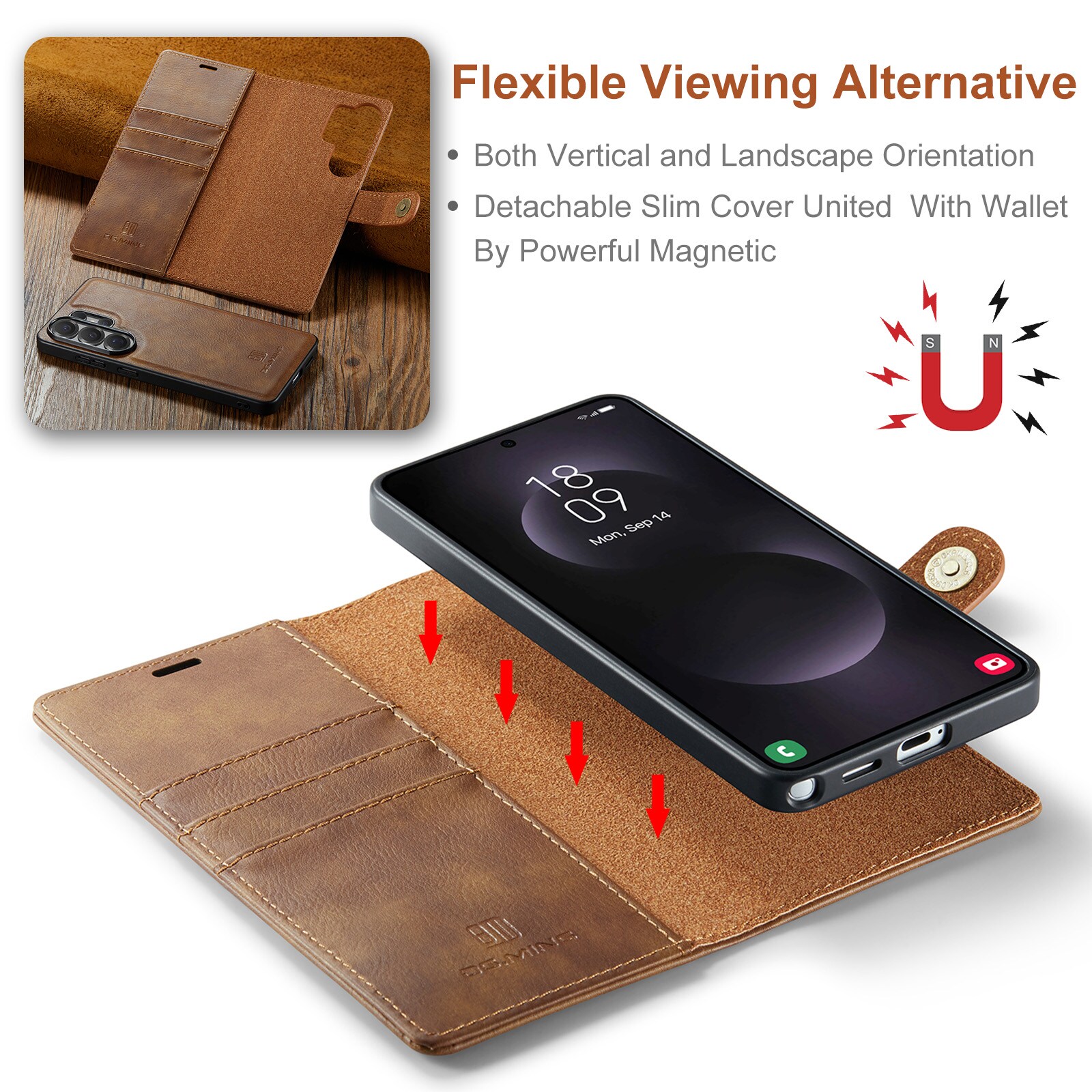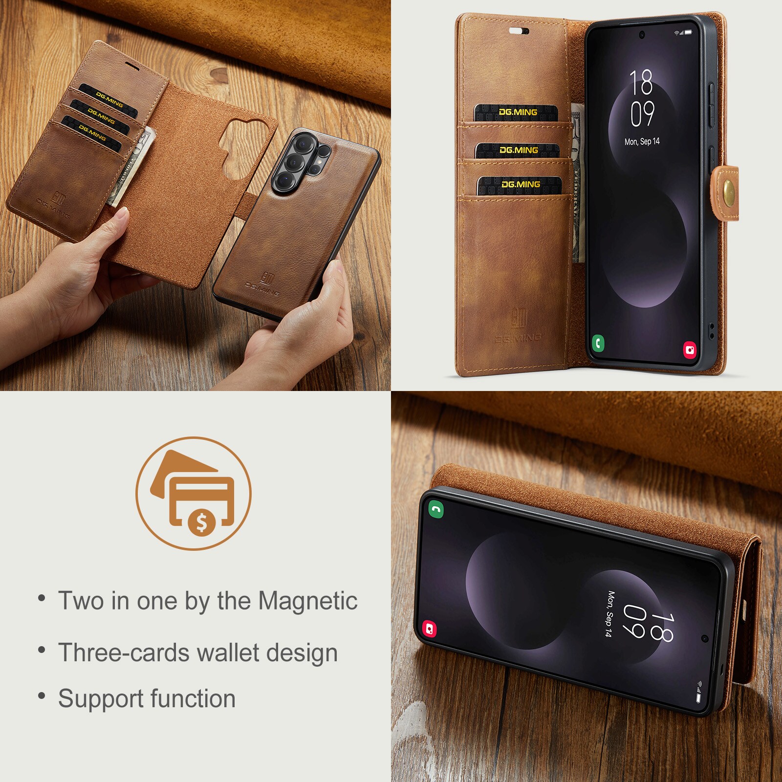 2-in-1-hoesje bestaande uit een bookcoverhoesje met daarin een afneembare magneet-backcase voor Samsung Galaxy S26 Ultra van DG.MING. Het hoesje heeft een klassieke en stijlvolle uitstraling. Eenvoudig losnemen van je telefoon in het backcover hoesje om enkel je mobiel te gebruiken, bijvoorbeeld thuis of op werk.