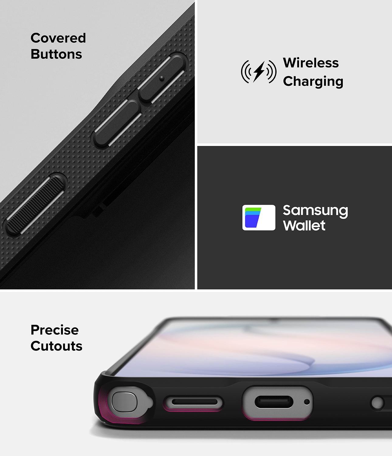 Onyx is een robuuste hoes van Ringke voor Samsung Galaxy S26 Ultra. Een hoes die stijlvol design combineert met uitstekende schokbescherming. De hoes heeft verstevigde hoeken, verhoogde randen en tactiele knoppen.