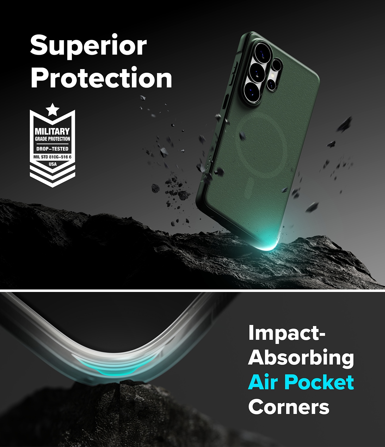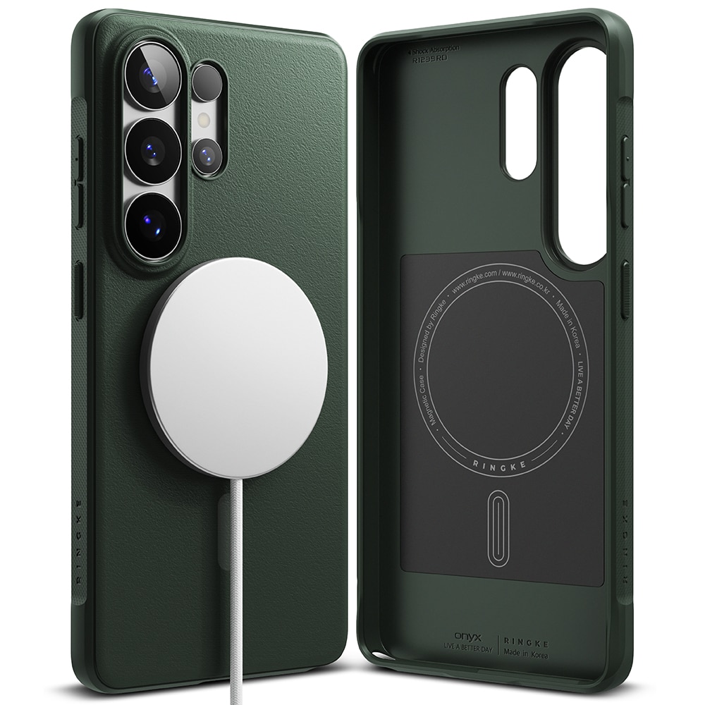 Onyx backcoverhoesje met MagSafe van Ringke voor Samsung Galaxy S26 Ultra. Deze case is stootdempend om schade aan je telefoon te voorkomen en door de ondersteuning voor MagSafe kun je eenvoudig je MagSafe-accessoires en MagSafe-oplader gebruiken met dit hoesje om je telefoon.
