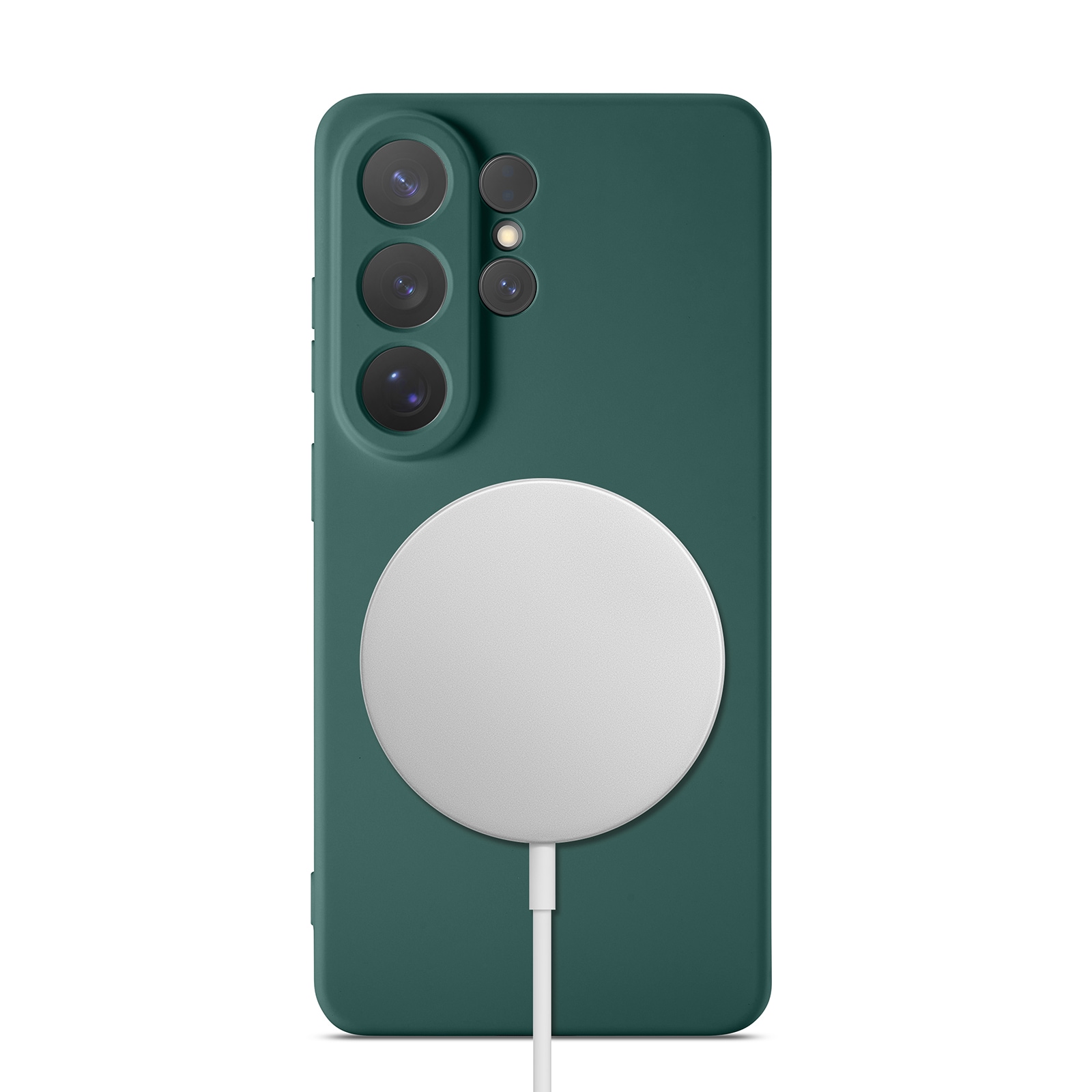 De hoes heeft een magnetische ring aan de binnenkant en is compatibel met MagSafe-accessoires zoals opladers en kaarthouders.