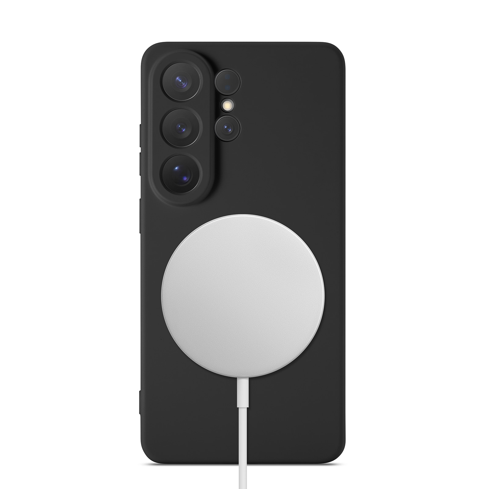 De hoes heeft een magnetische ring aan de binnenkant en is compatibel met MagSafe-accessoires zoals opladers en kaarthouders.