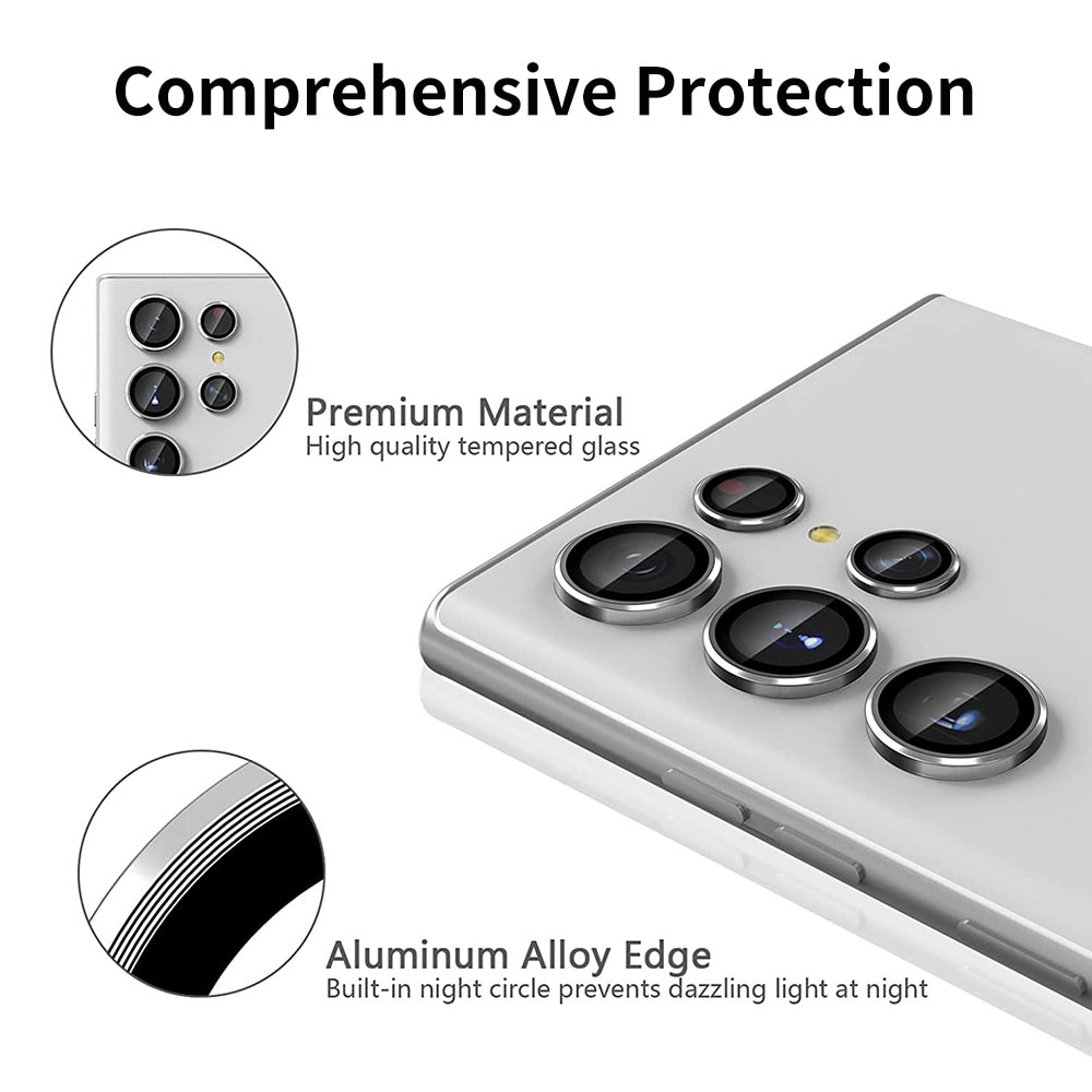 Bescherm de cameralenzen van je Samsung Galaxy S26 Ultra met deze stijlvolle en schokbestendige lensprotectors van gehard glas van Hat Prince. De lensprotector heeft een stijlvol aluminium frame dat schokabsorberend is en de cameralenzen goed beschermt tegen krassen.
