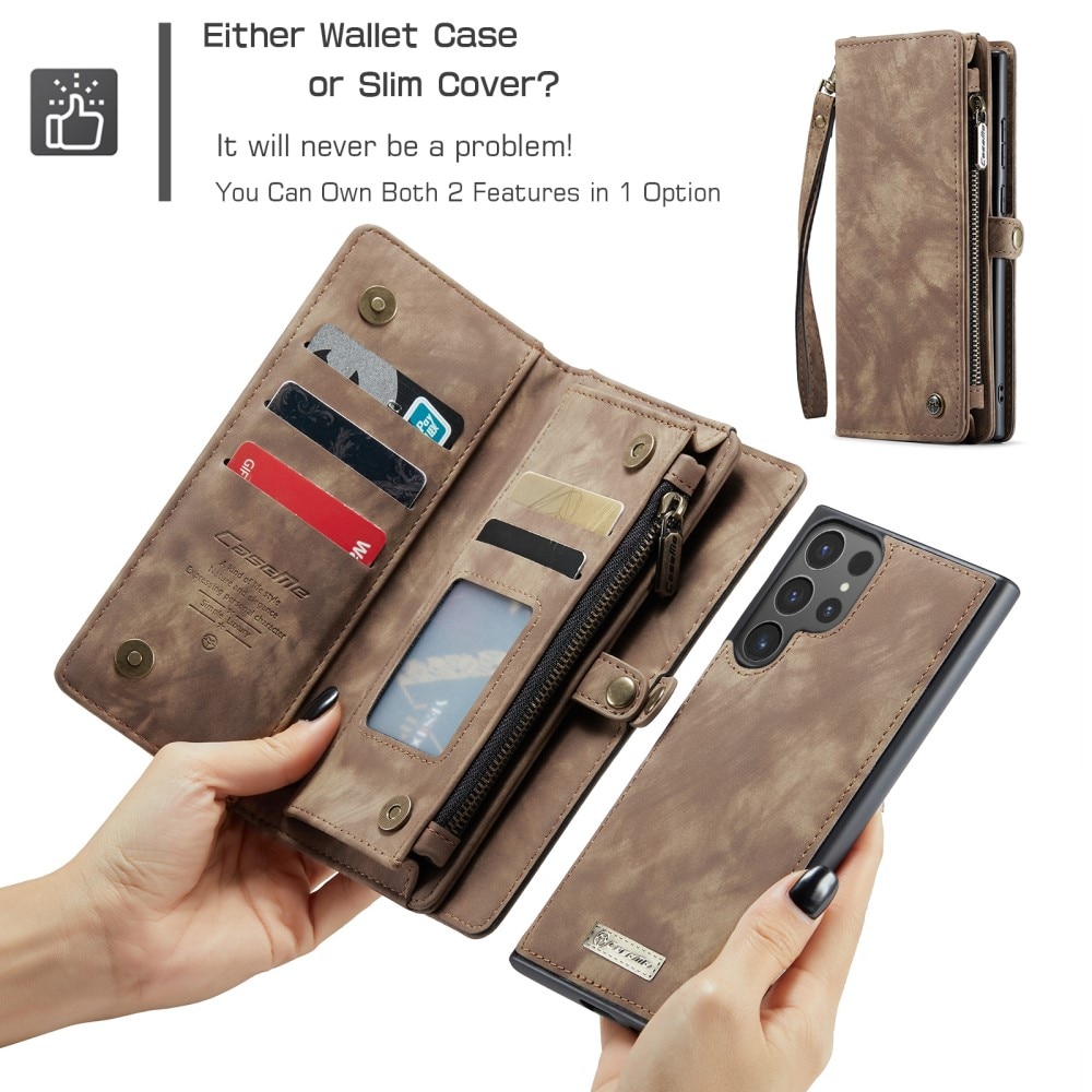 Telefoonhoesje met magnetische case en portemonnee met extra veel kaartsleuven voor Samsung Galaxy S26 Ultra van CaseMe. De ruime portemonnee heeft een vak voor bankbiljetten, een muntvak met ritssluiting en meerdere kaartsleuven.