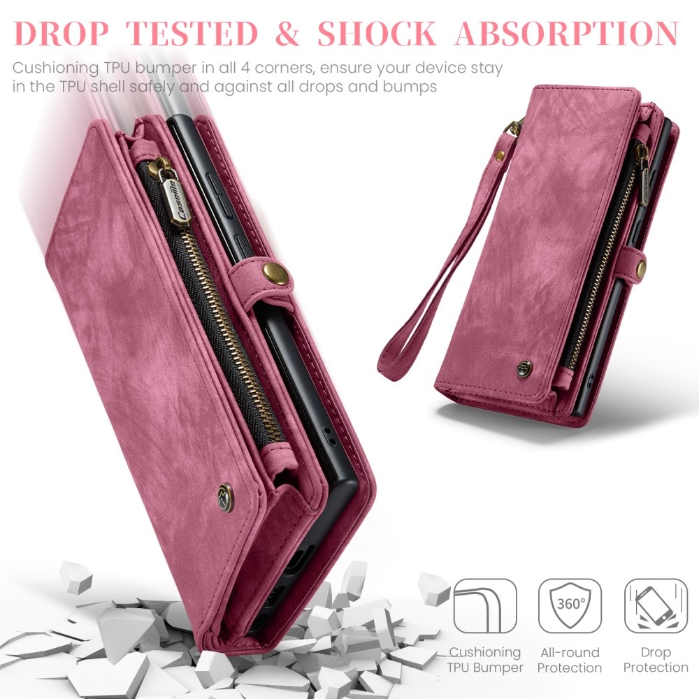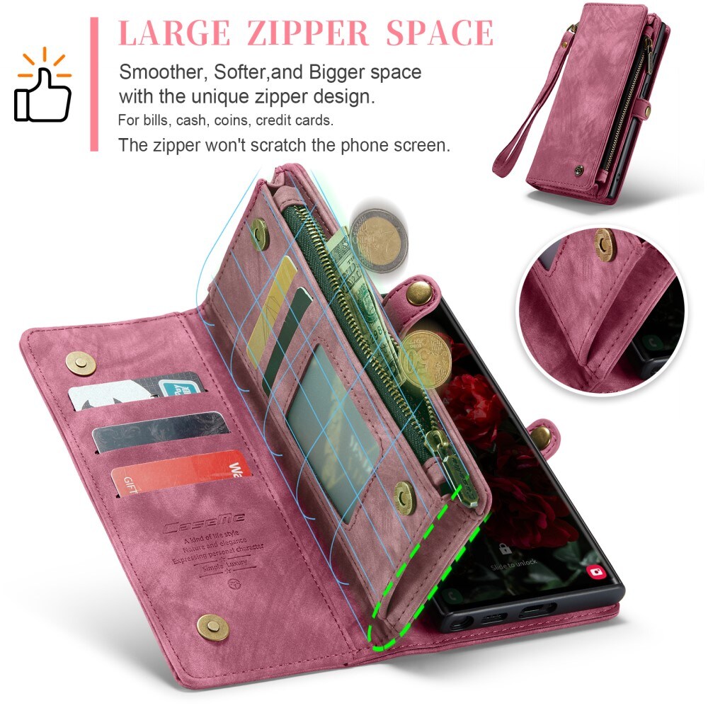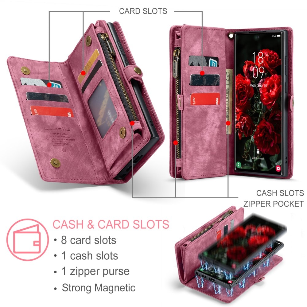 Telefoonhoesje met magnetische case en portemonnee met extra veel kaartsleuven voor Samsung Galaxy S26 Ultra van CaseMe. De ruime portemonnee heeft een vak voor bankbiljetten, een muntvak met ritssluiting en meerdere kaartsleuven.
