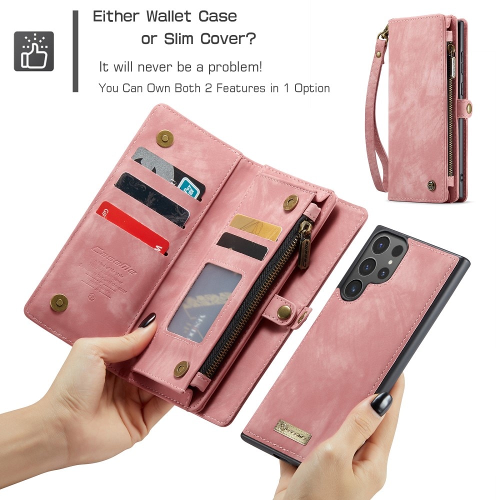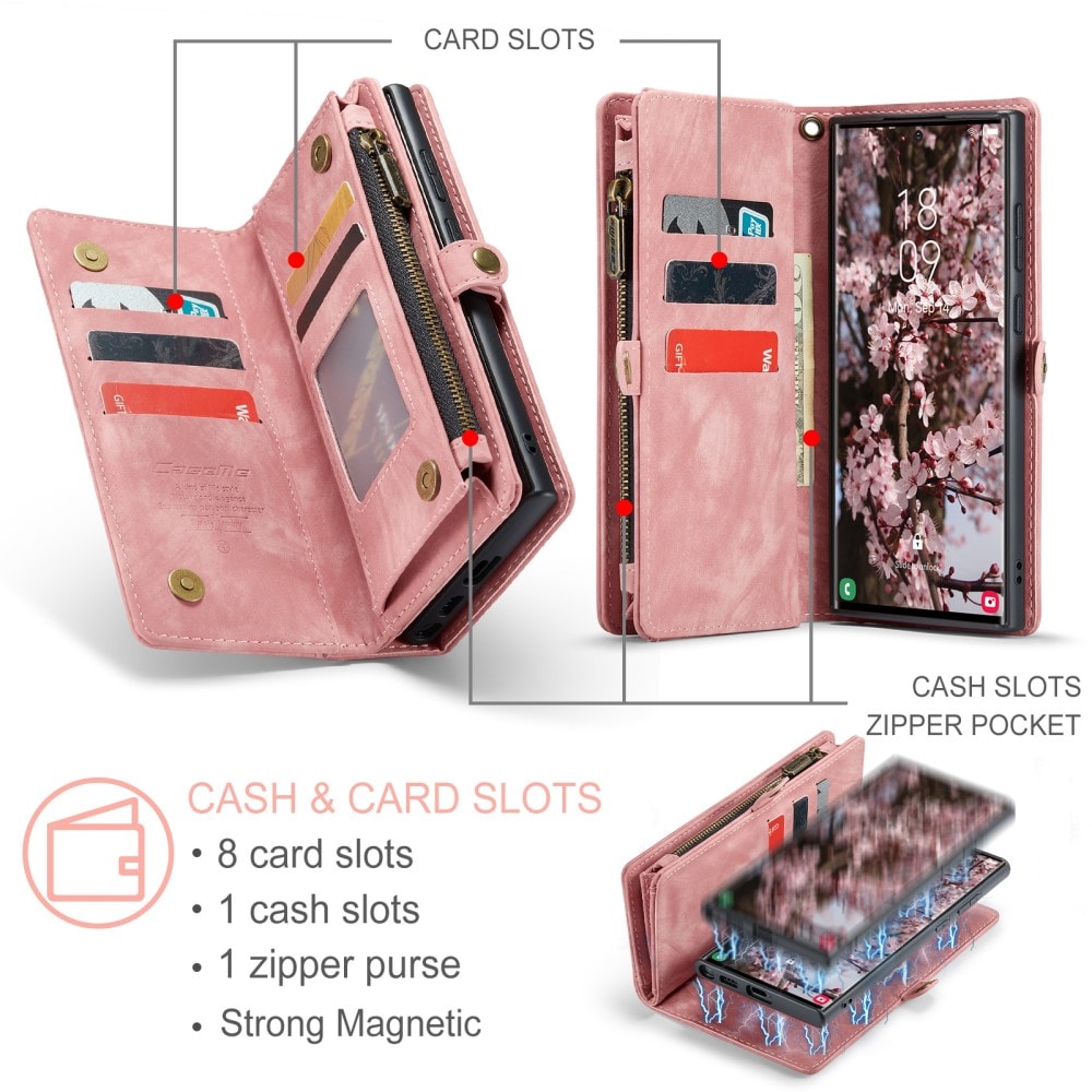 Telefoonhoesje met magnetische case en portemonnee met extra veel kaartsleuven voor Samsung Galaxy S26 Ultra van CaseMe. De ruime portemonnee heeft een vak voor bankbiljetten, een muntvak met ritssluiting en meerdere kaartsleuven.
