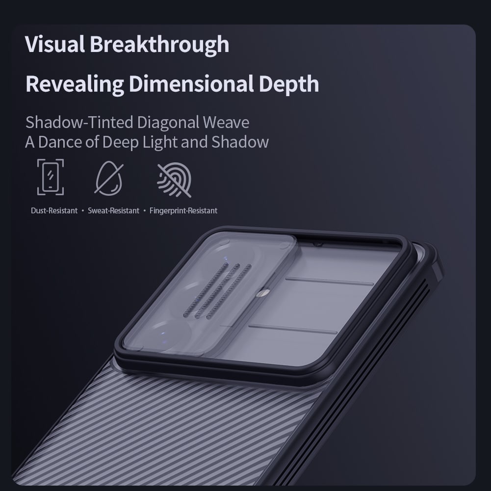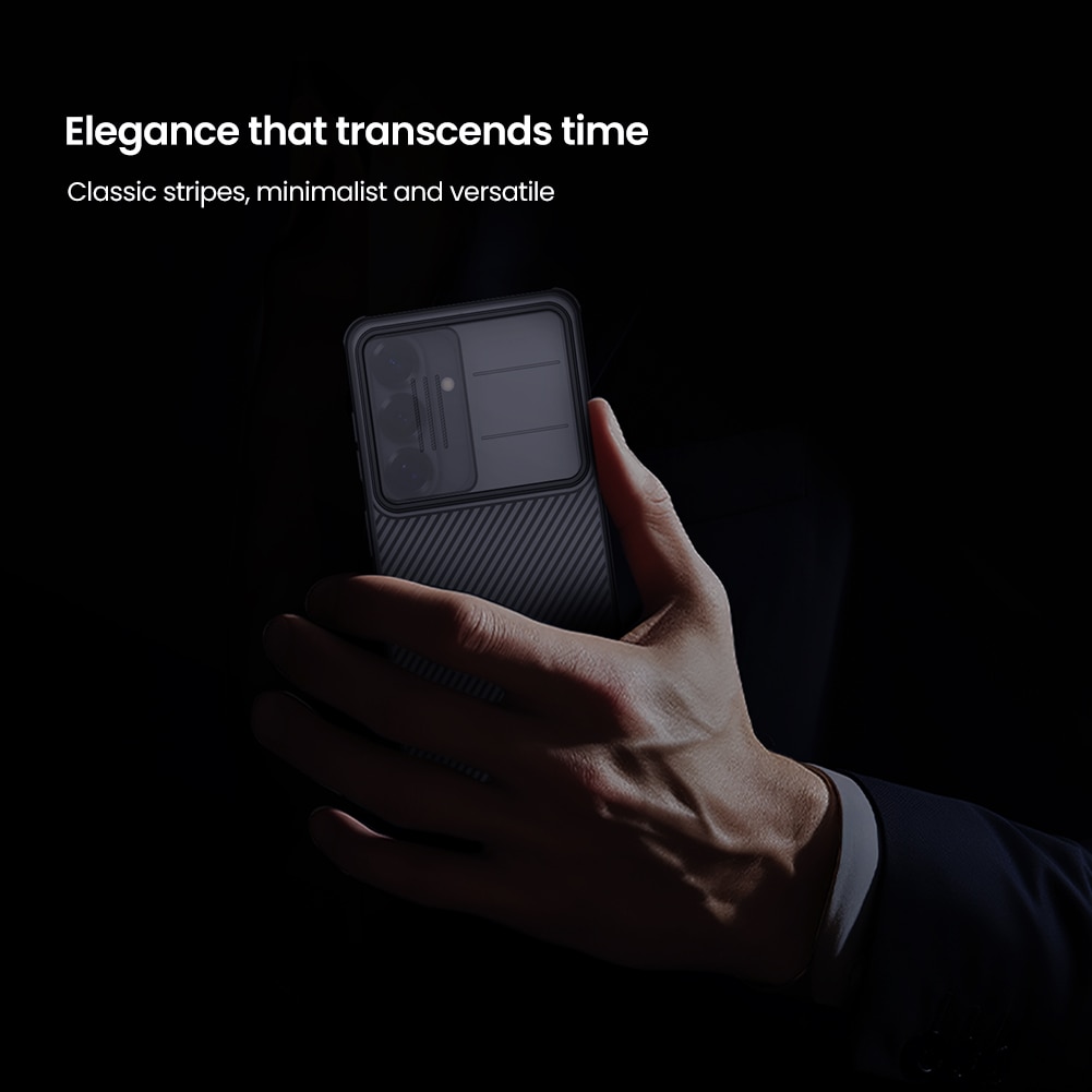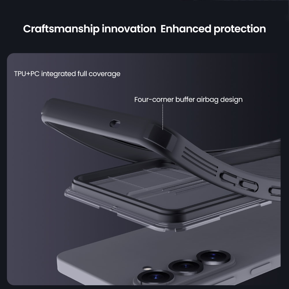 Backcoverhoesje van Nillkin met camerabescherming in stijlvol ontwerp voor Samsung Galaxy S26. Om de camera van je telefoon te beschermen tegen krassen en beschadigingen heeft het hoesje een schuifje dat gemakkelijk voor de camera schuift wanneer je deze niet gebruikt.