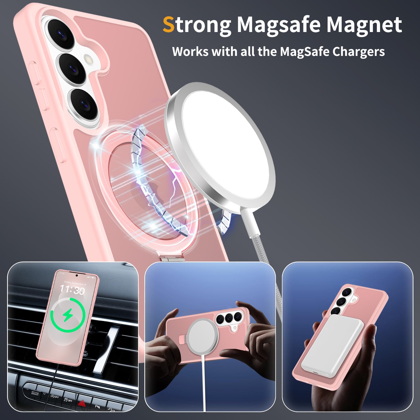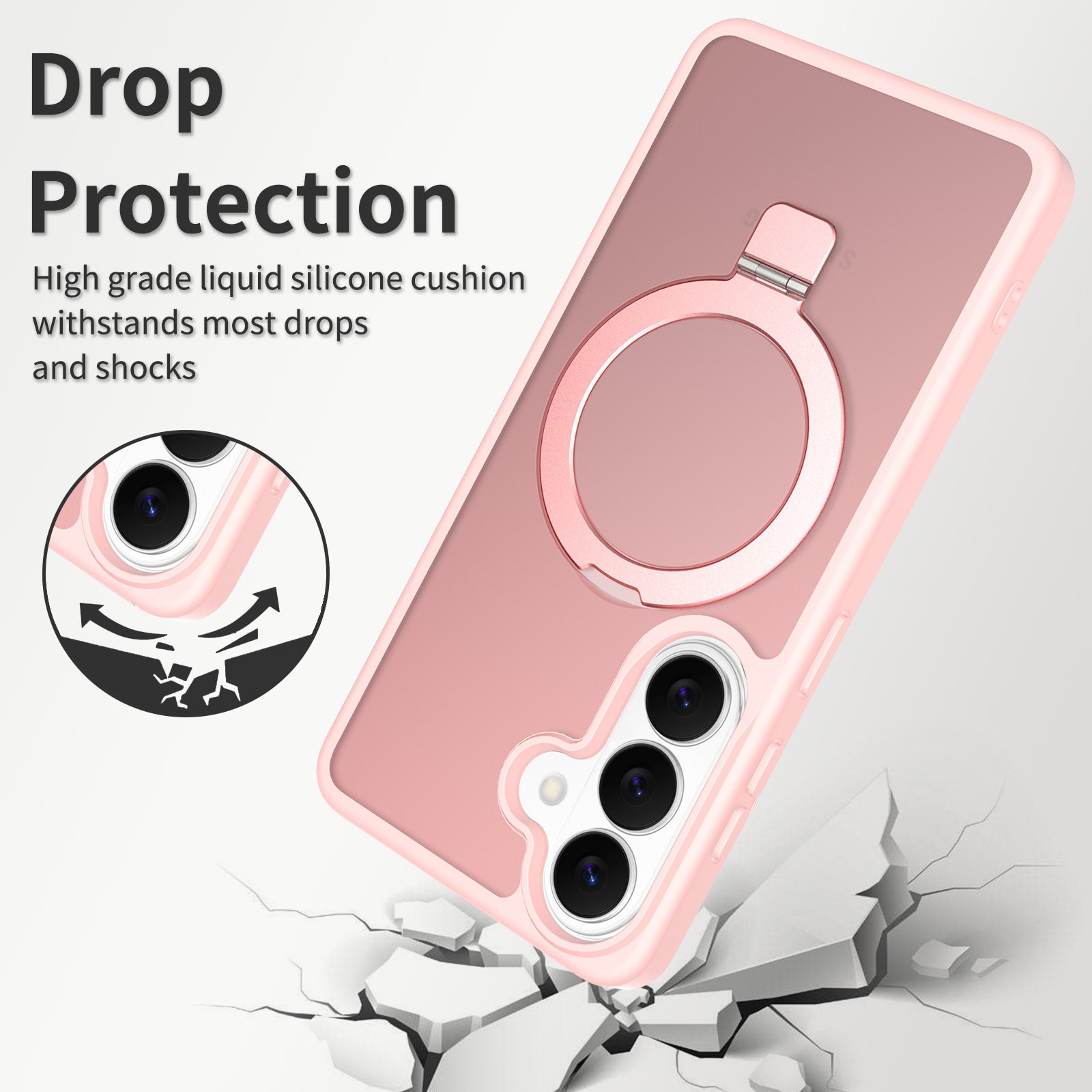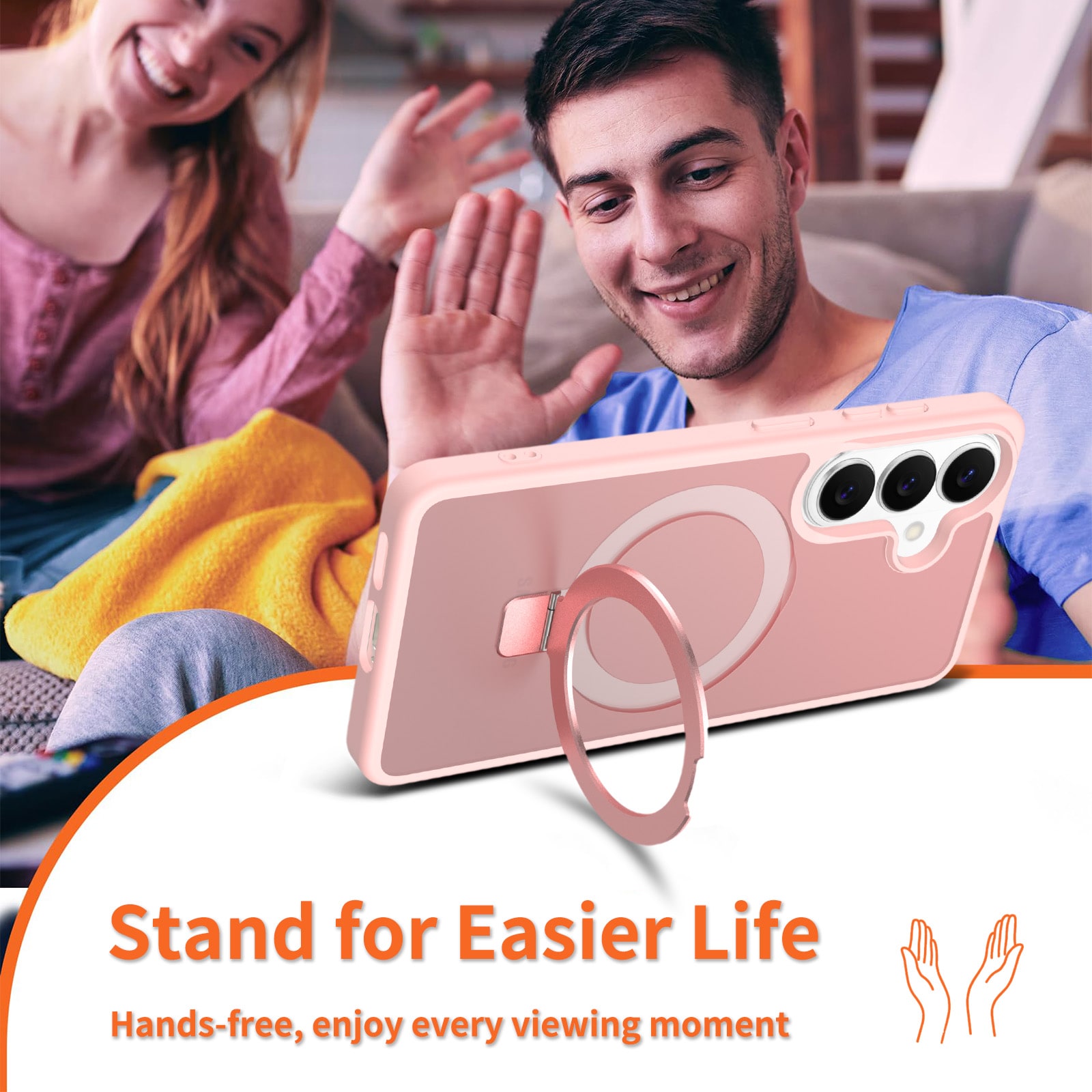 Hybride backcase met uitvouwbare magnetische ring voor Samsung Galaxy S26. Voor de beste bescherming van je telefoon is dit hybride hoesje tweeledig en bestaat uit een kern van TPU-siliconen en een buitenkant van plastic. De magnetische ring op de achterkant kan gebruikt worden met MagSafe-compatibele accessoires zoals laders en pasjeshouders. De ring kan tevens uitgevouwen worden tot een standaard om naar filmpjes of YouTube te kijken.