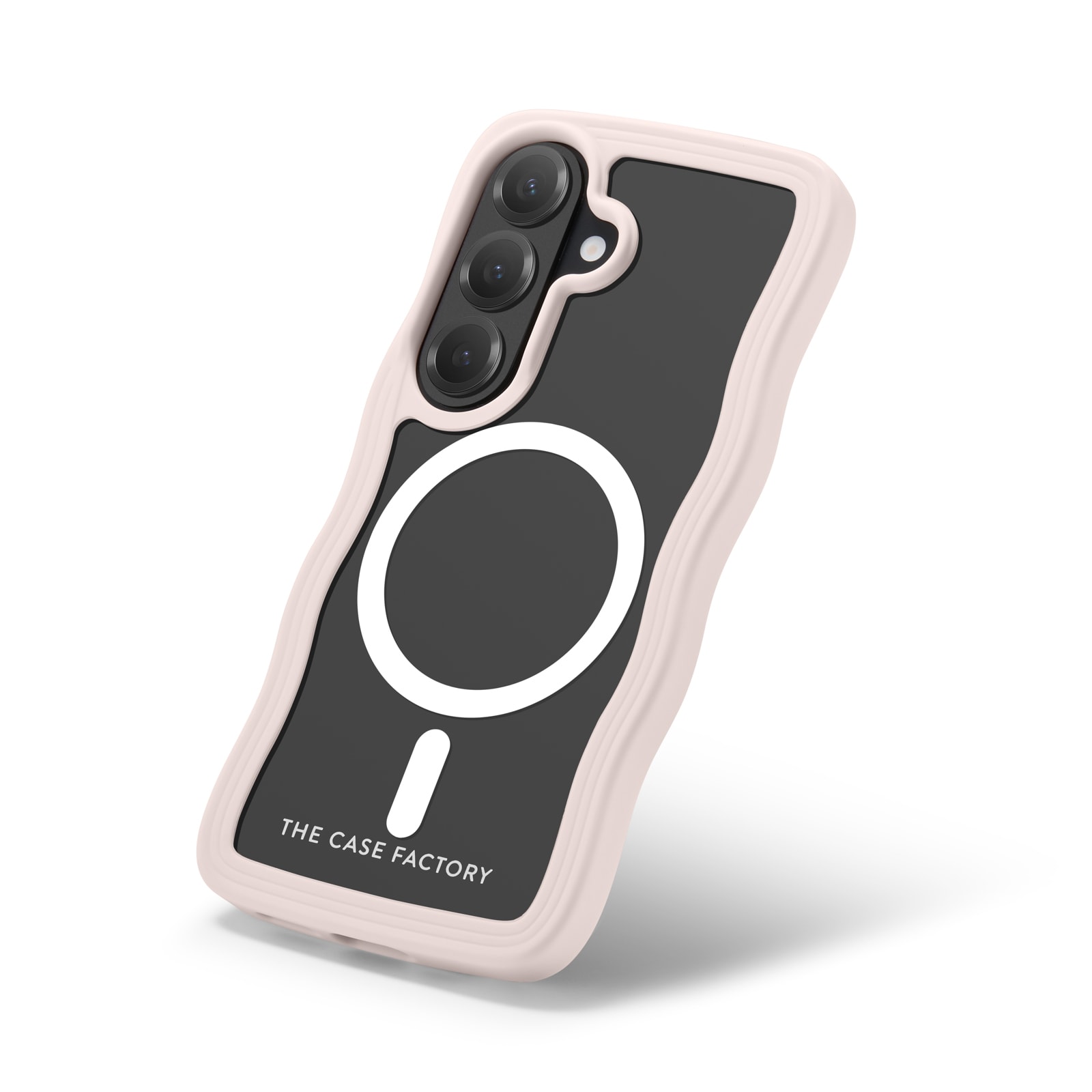 Elegant MagSafe-compatibel telefoonhoesje met een door golven geïnspireerd design voor je Samsung Galaxy S26 van The Case Factory. Het hoesje is gemaakt van schokbestendig hard plastic en heeft een zachte, flexibele TPU-rand die zorgt voor een unieke en stijlvolle uitstraling. De golvende rand maakt het hoesje extra gripvast, ligt prettig in de hand en verkleint de kans dat je telefoon uit je hand glipt.