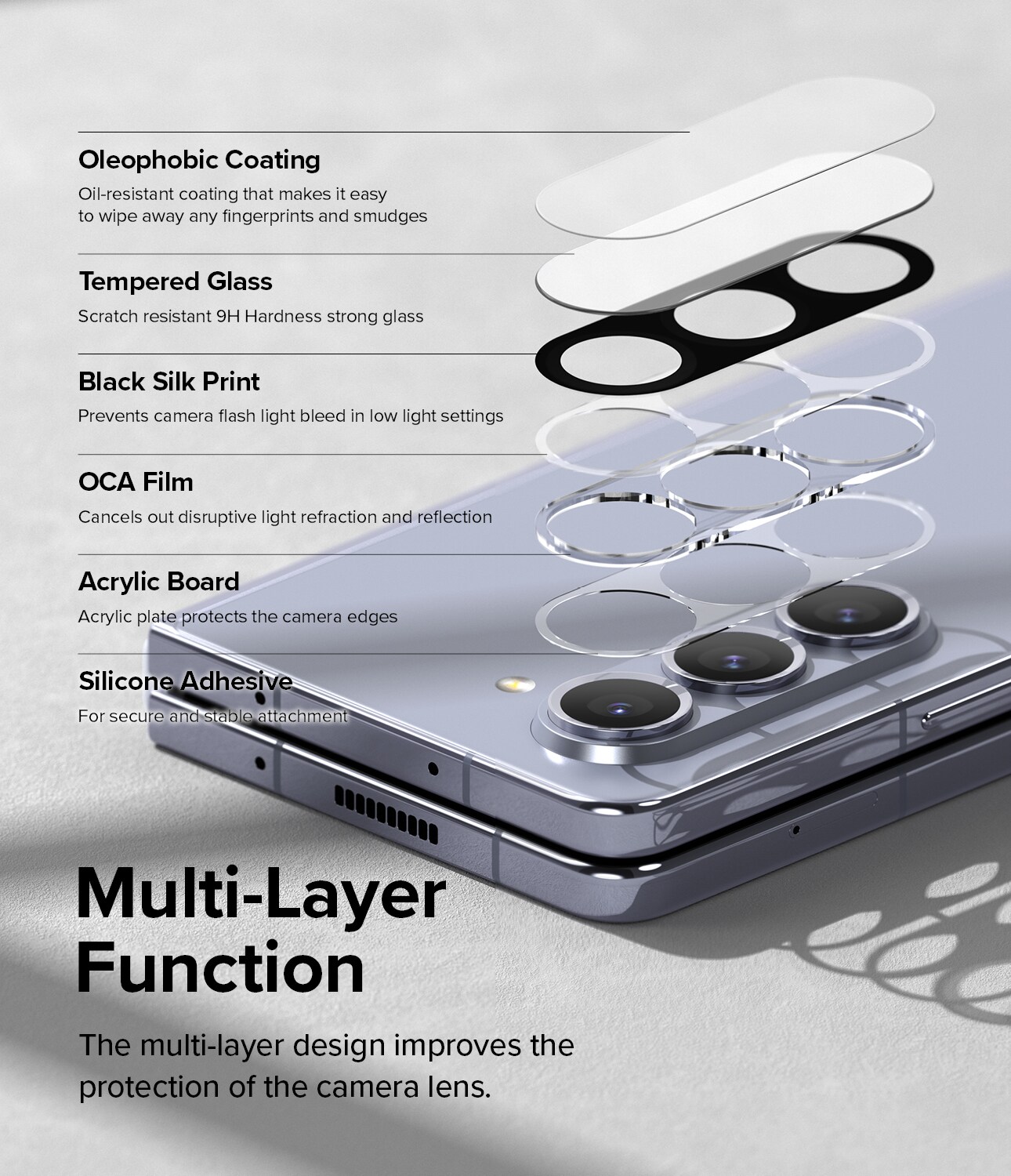 Beschermende cameralensbeschermer voor de cameramodule van je Samsung Galaxy Z Fold 5 van Ringke. Deze beschermer voorkomt effectief krassen en beschadigingen, zodat je langdurig scherpe foto's kunt blijven maken.