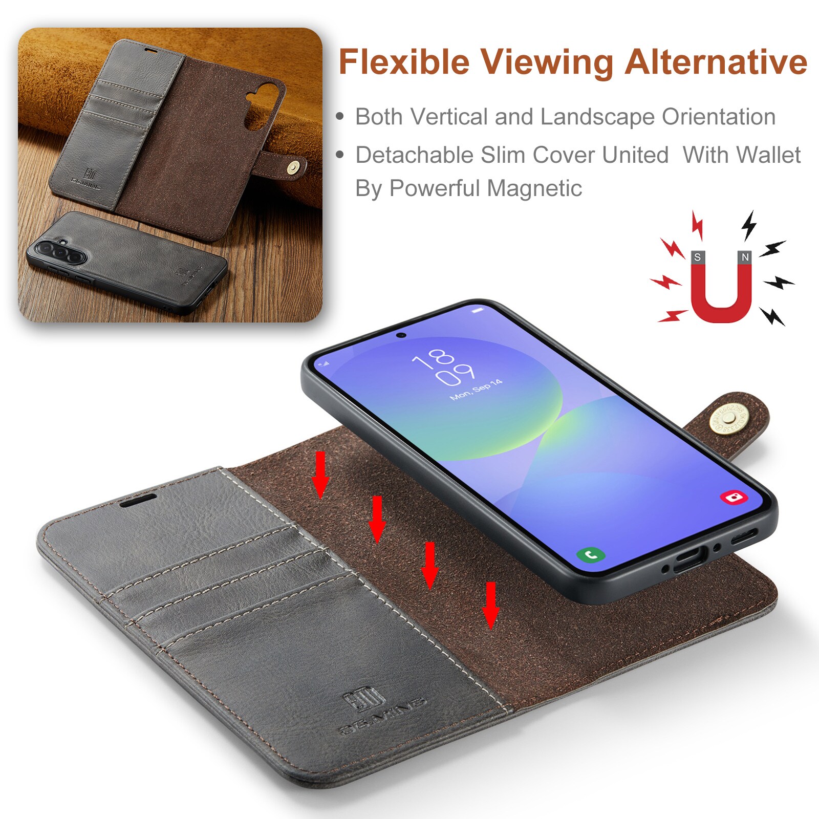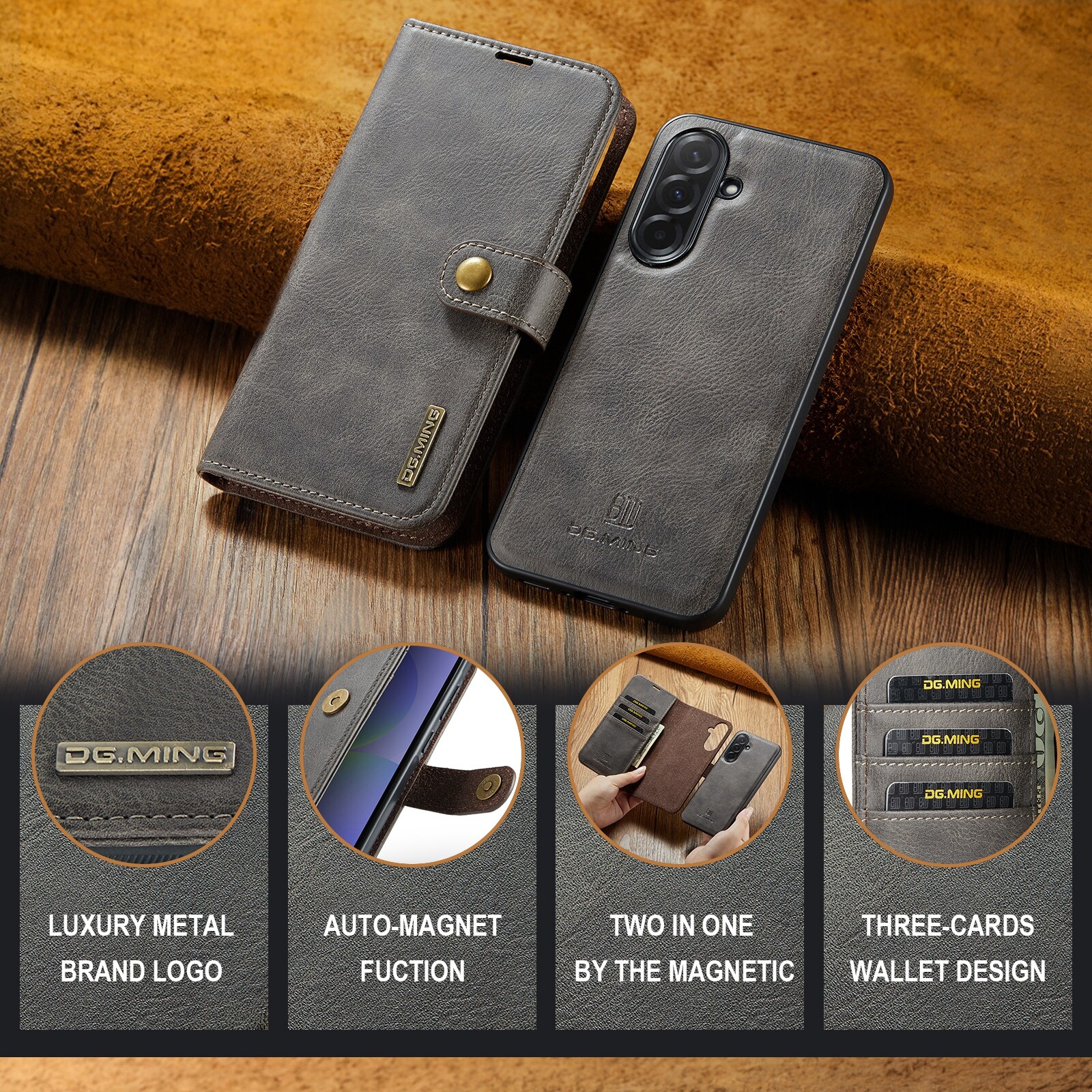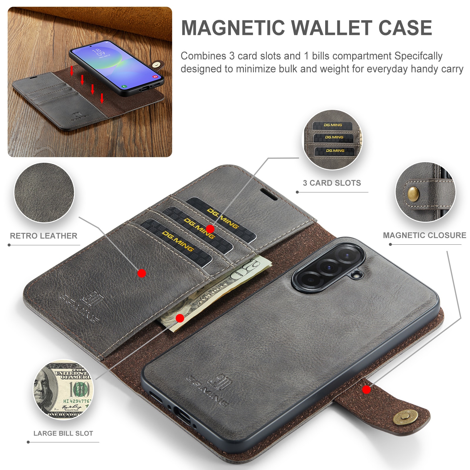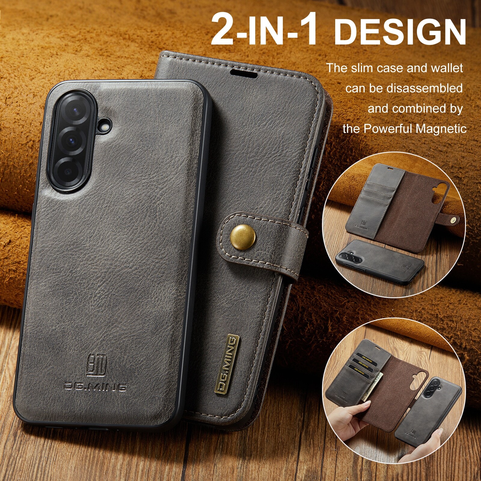 2-in-1-hoesje bestaande uit een bookcoverhoesje met daarin een afneembare magneet-backcase voor Samsung Galaxy A37 van DG.MING. Het hoesje heeft een klassieke en stijlvolle uitstraling. Eenvoudig losnemen van je telefoon in het backcover hoesje om enkel je mobiel te gebruiken, bijvoorbeeld thuis of op werk.
