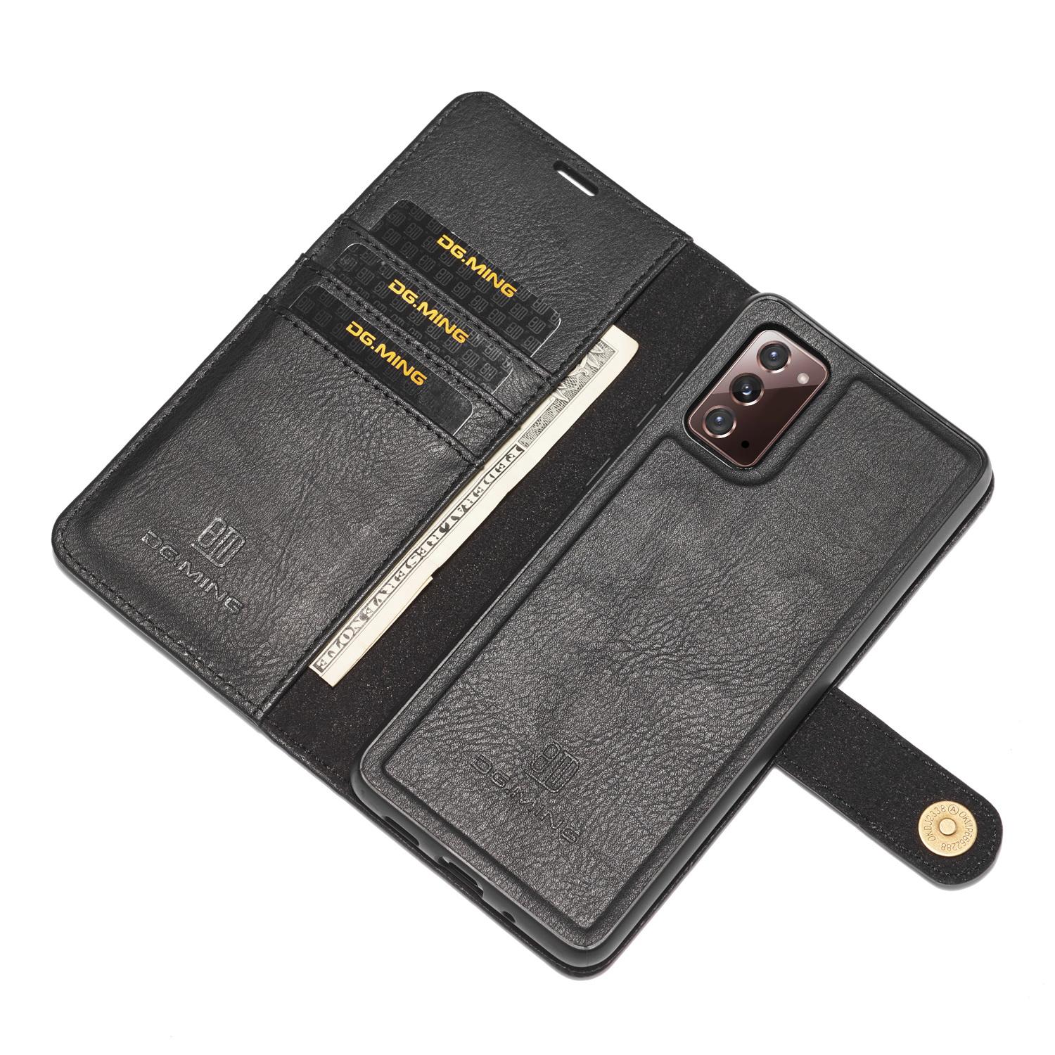 2-in-1-hoesje bestaande uit een bookcoverhoesje met daarin een afneembare magneet-backcase voor Samsung Galaxy Note 20 van DG.MING. Het hoesje heeft een klassieke en stijlvolle uitstraling. Eenvoudig losnemen van je telefoon in het backcover hoesje om enkel je mobiel te gebruiken, bijvoorbeeld thuis of op werk.