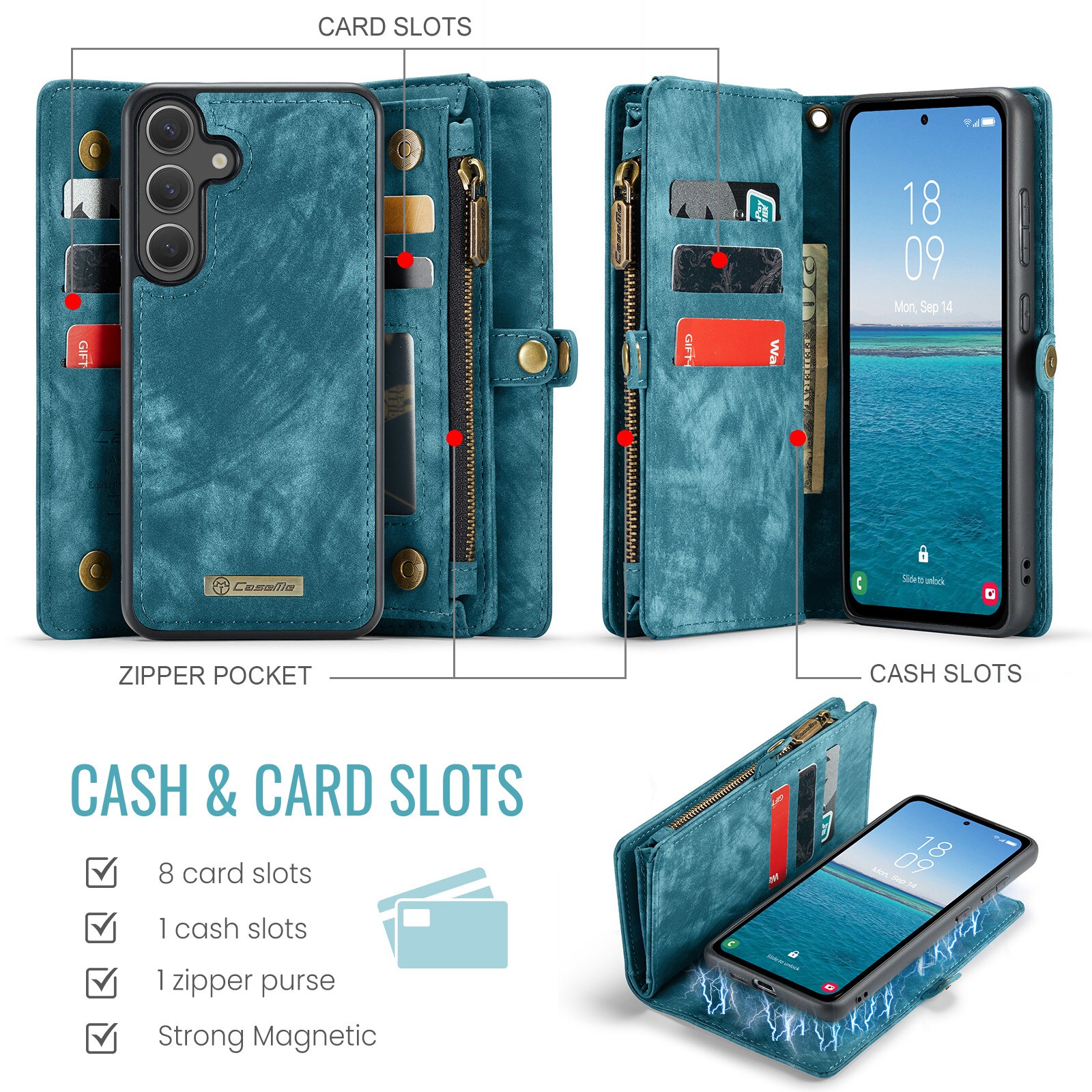 Telefoonhoesje met magnetische case en portemonnee met extra veel kaartsleuven voor Samsung Galaxy S26 Plus van CaseMe. De ruime portemonnee heeft een vak voor bankbiljetten, een muntvak met ritssluiting en meerdere kaartsleuven.