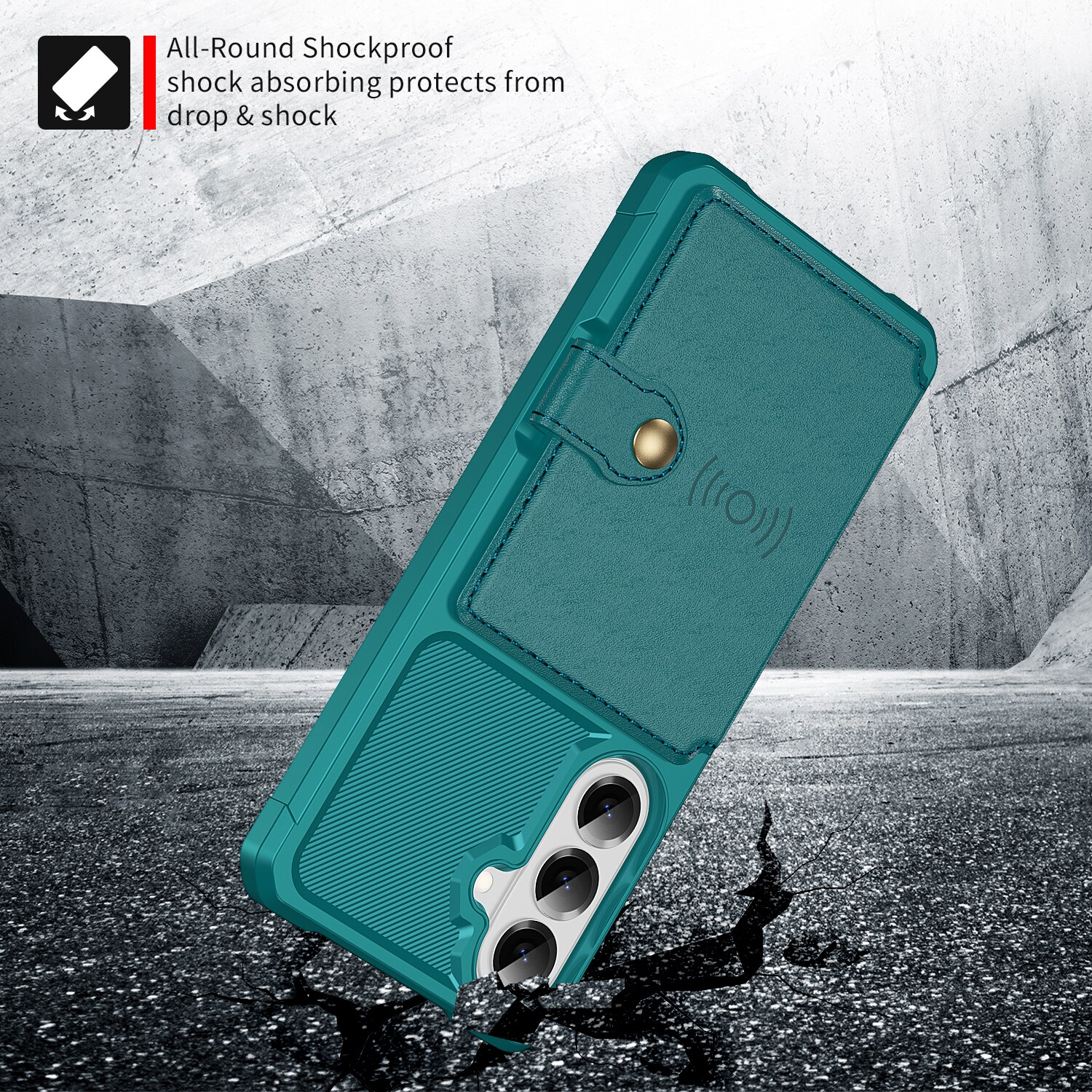 Schokabsorberend backcase hoesje voor de Samsung Galaxy S26 met ingebouwde portemonnee aan de achterkant. Het hoesje heeft een modern design en verstevigde hoeken voor de beste bescherming.