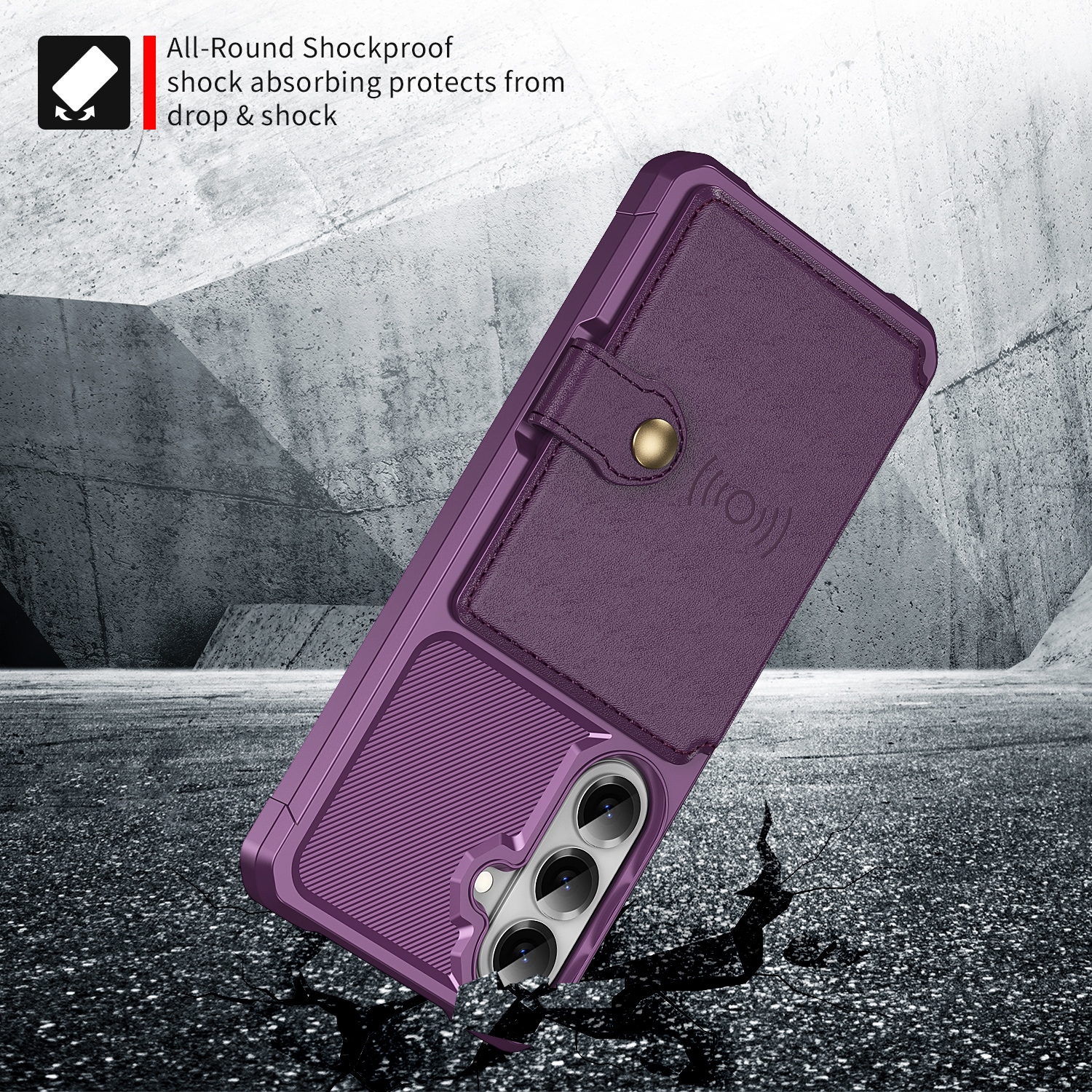 Schokabsorberend backcase hoesje voor de Samsung Galaxy S26 met ingebouwde portemonnee aan de achterkant. Het hoesje heeft een modern design en verstevigde hoeken voor de beste bescherming.