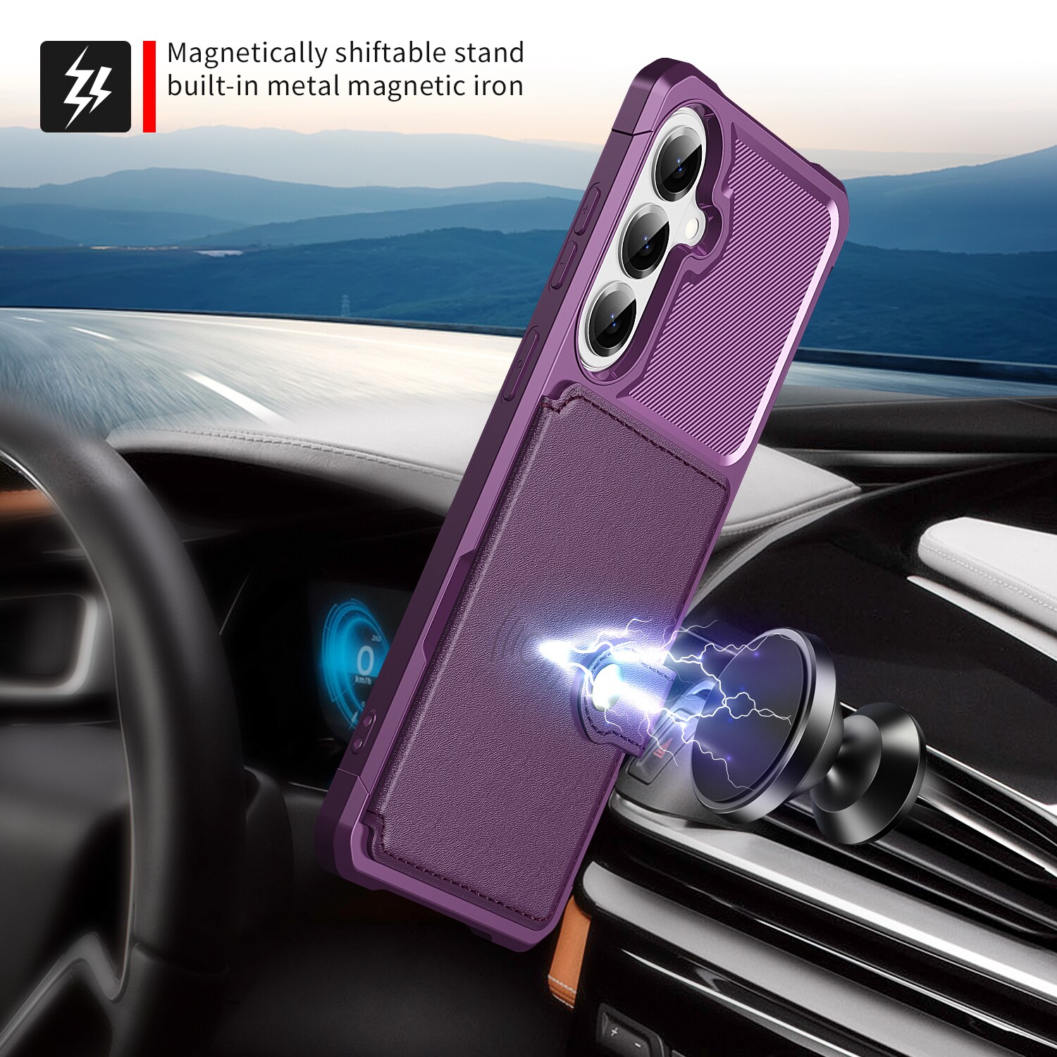 - Het hoesje is magnetisch en kan bevestigd worden op magnetische (auto)houders
