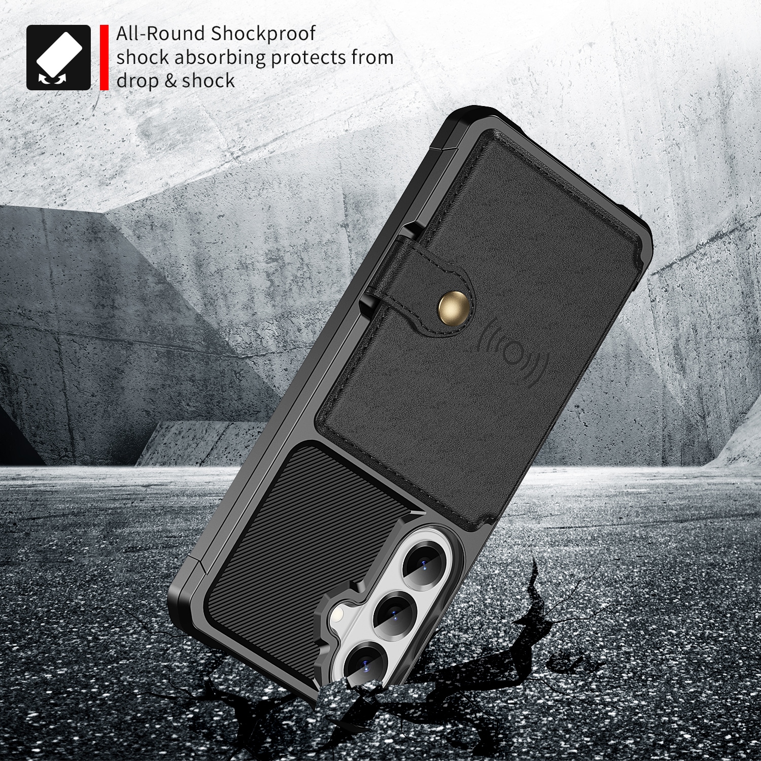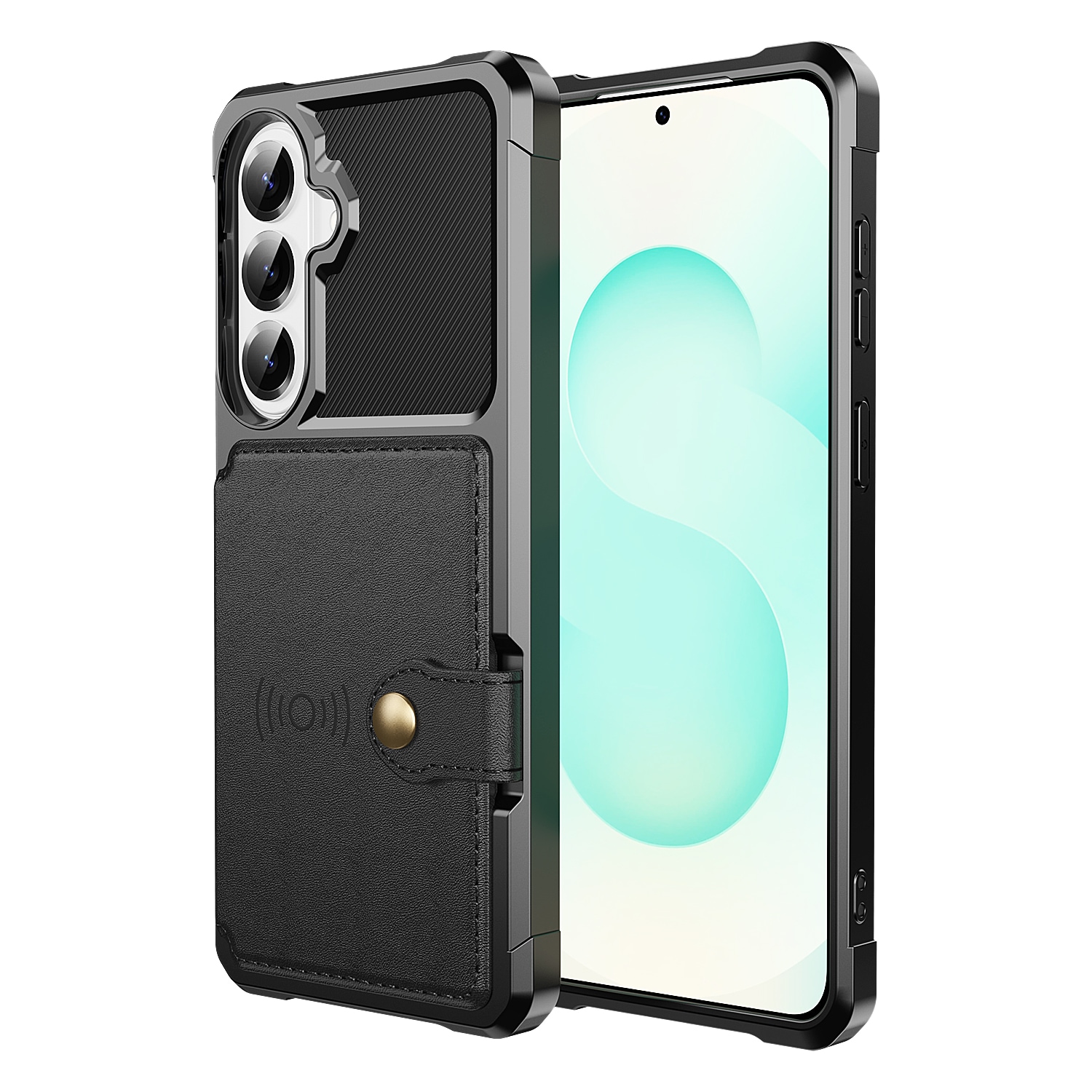 Schokabsorberend backcase hoesje voor de Samsung Galaxy S26 met ingebouwde portemonnee aan de achterkant. Het hoesje heeft een modern design en verstevigde hoeken voor de beste bescherming.