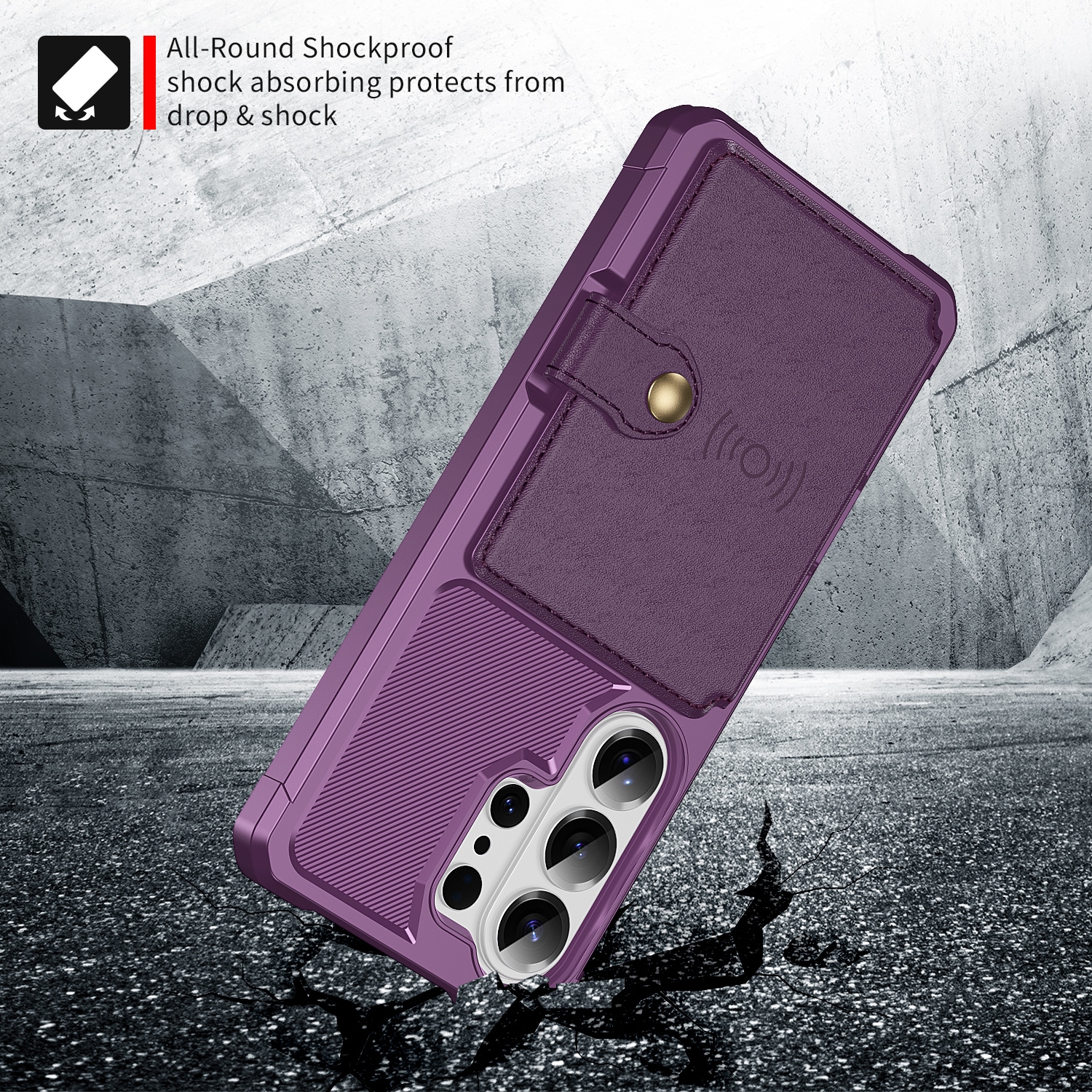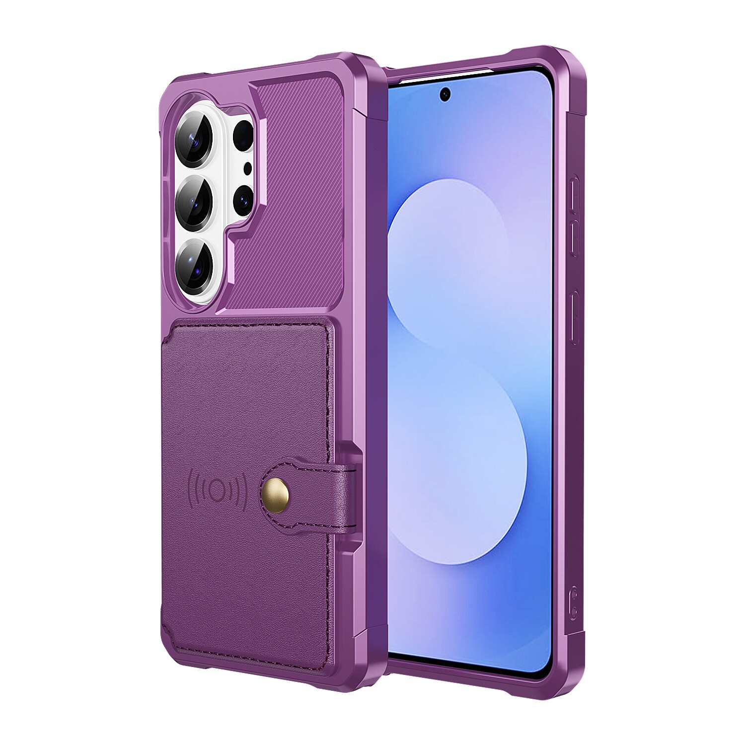 Schokabsorberend backcase hoesje voor de Samsung Galaxy S26 Ultra met ingebouwde portemonnee aan de achterkant. Het hoesje heeft een modern design en verstevigde hoeken voor de beste bescherming.