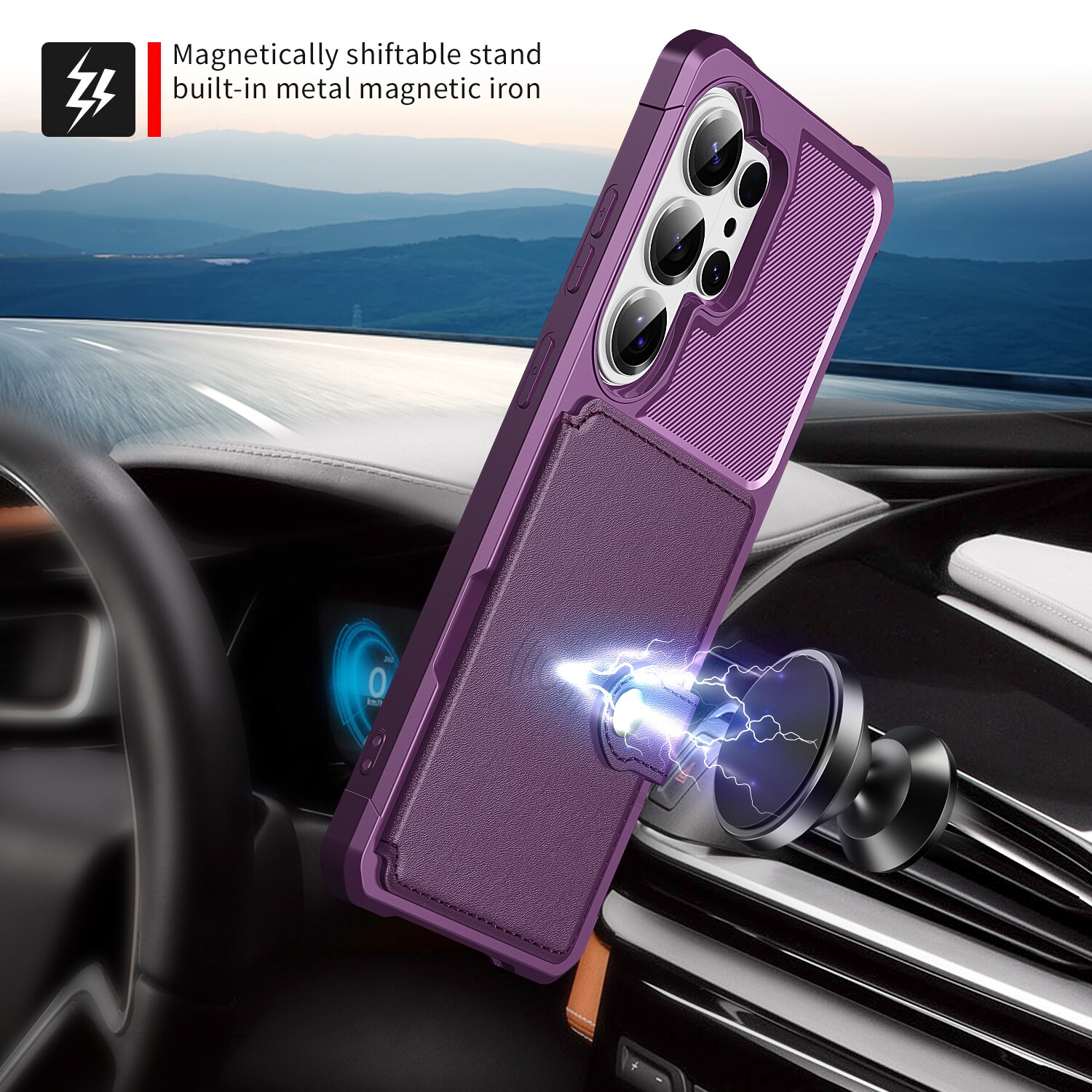 - Het hoesje is magnetisch en kan bevestigd worden op magnetische (auto)houders