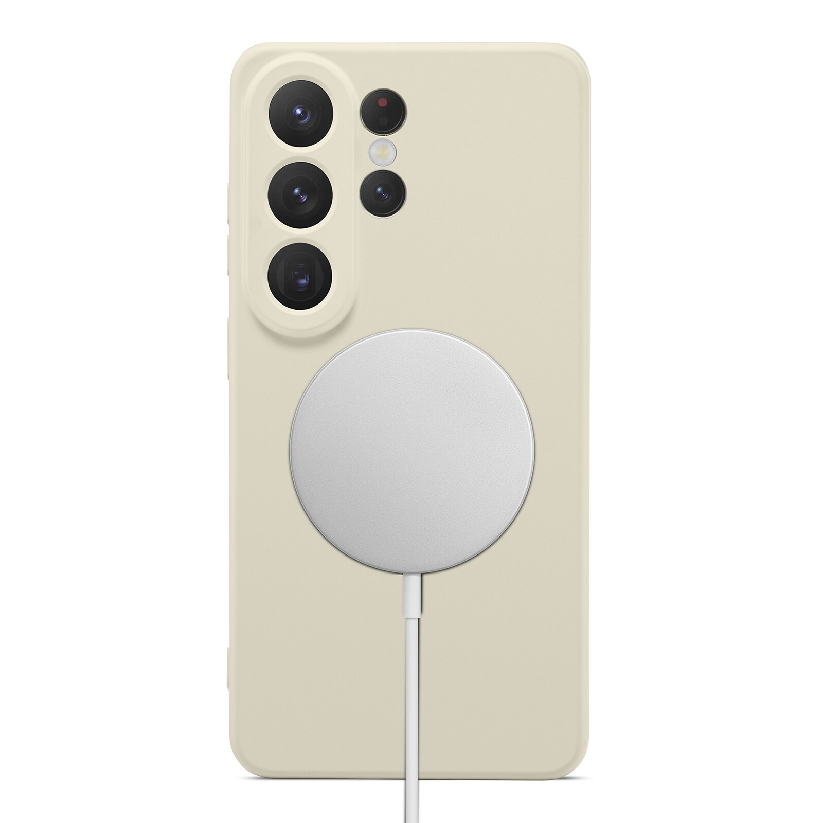 De hoes heeft een magnetische ring aan de binnenkant en is compatibel met MagSafe-accessoires zoals opladers en kaarthouders.