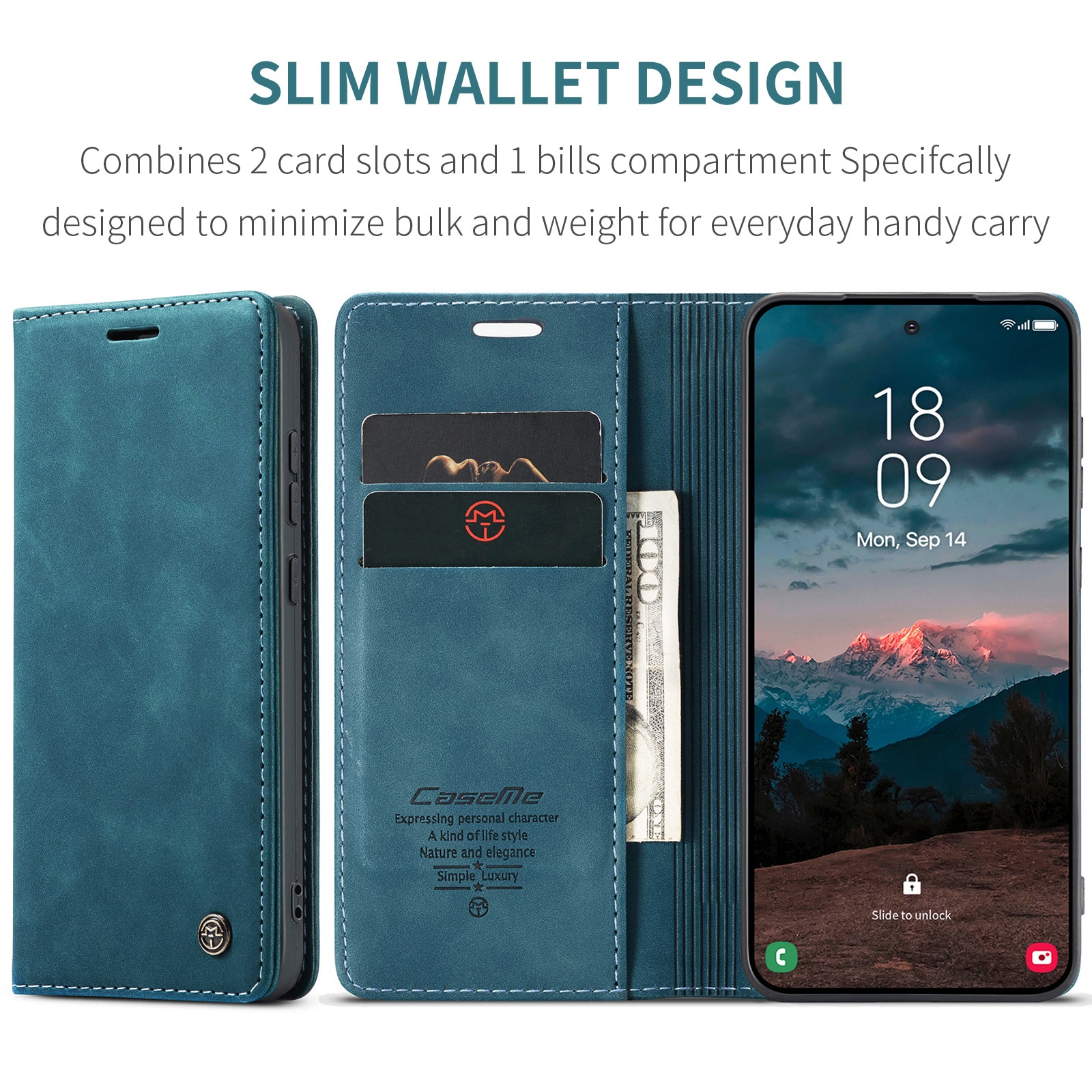 Slim Bookcover hoesje van CaseMe voor Samsung Galaxy S26.De hoes biedt volledige bescherming rondom je telefoon zonder in te leveren op stijl. De klep wordt gesloten met onzichtbare magneten, wat zorgt voor een slank ontwerp dat je telefoon niet log maakt.