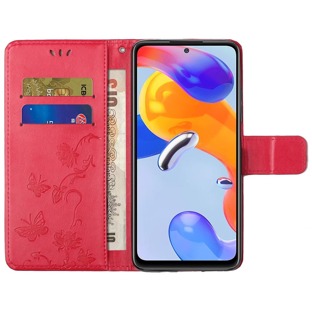 Bookcover hoesje met een vlinderdessin in het leer gestanst voor Xiaomi Redmi Note 11 Pro. Het hoesje is zowel mooi als functioneel en beschermt je hele telefoon tegen krassen, beschadigingen en viezigheid.